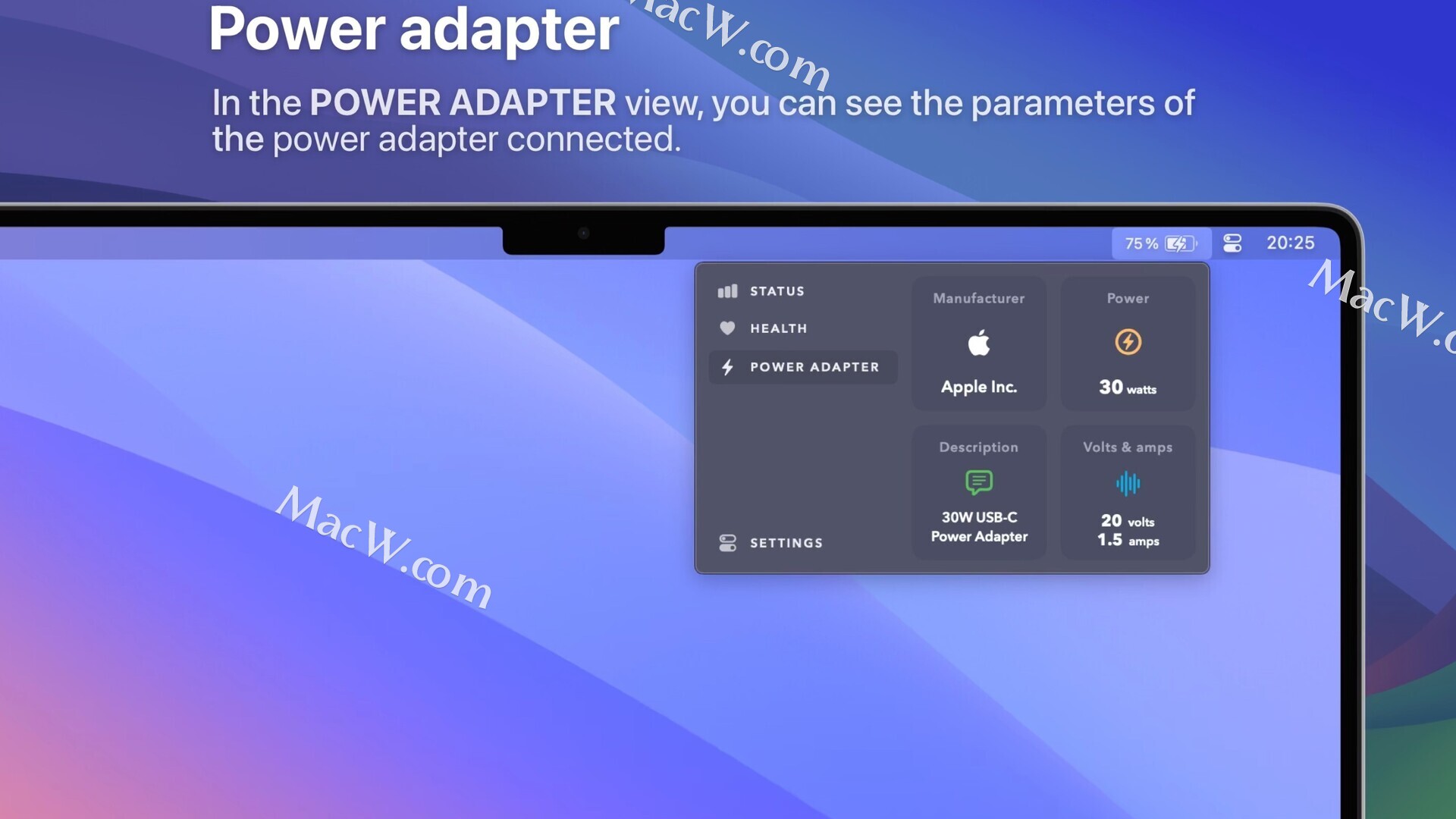 Watts for mac一款电池管理软件,Watts电池管理软件可对电池重新校准, 保持显示屏幕上的电池使用时间和百分百的准确性, 并保持电池在最高效率下工作,Watts MAC版还可以帮助我们查看电池的详细信息,比如电量、容量、循环次数、健康状态等。