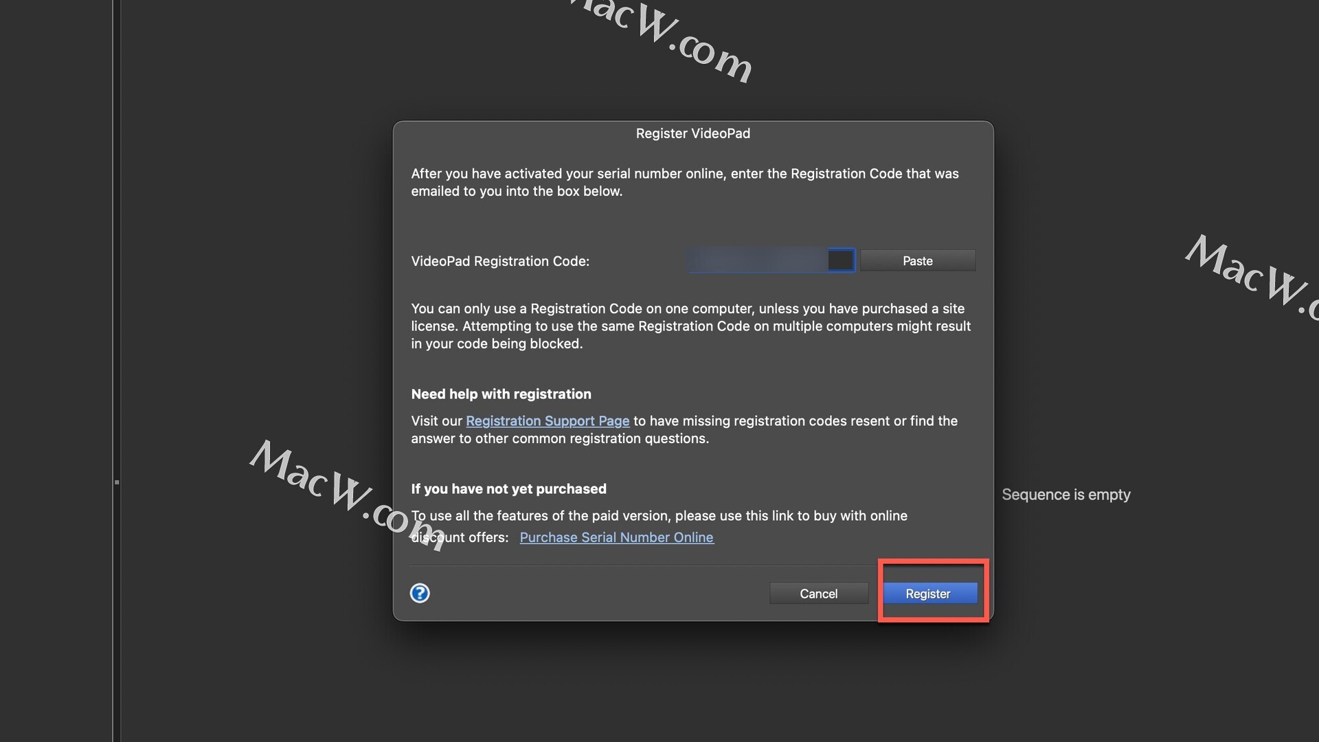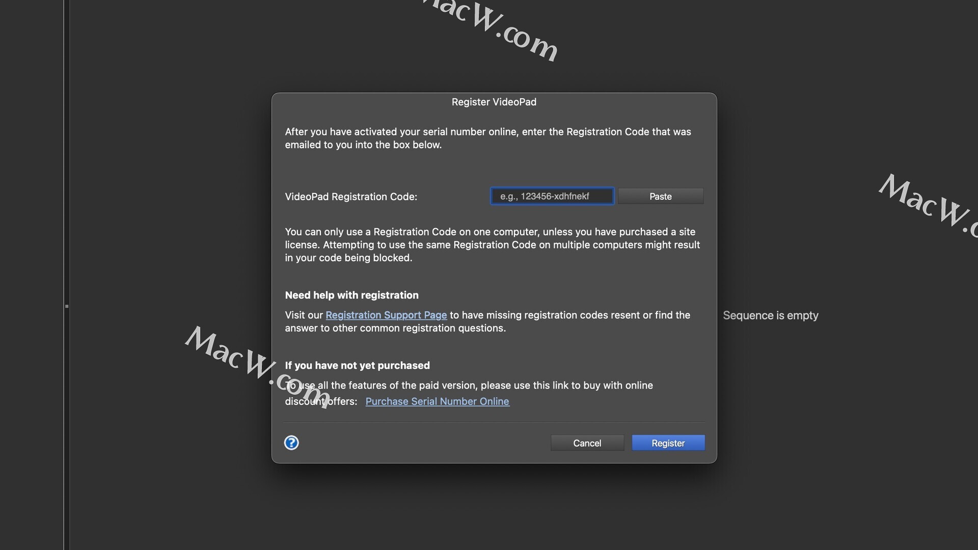 打开VideoPad注册窗口,如图: