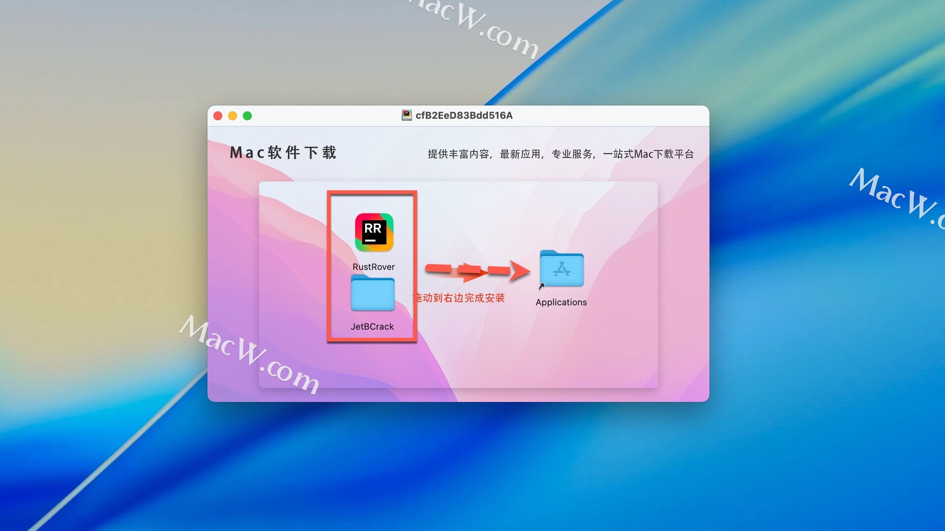 打开下载好的软件包,拖动软件和JetBCrack到右边的文件夹中进行安装
