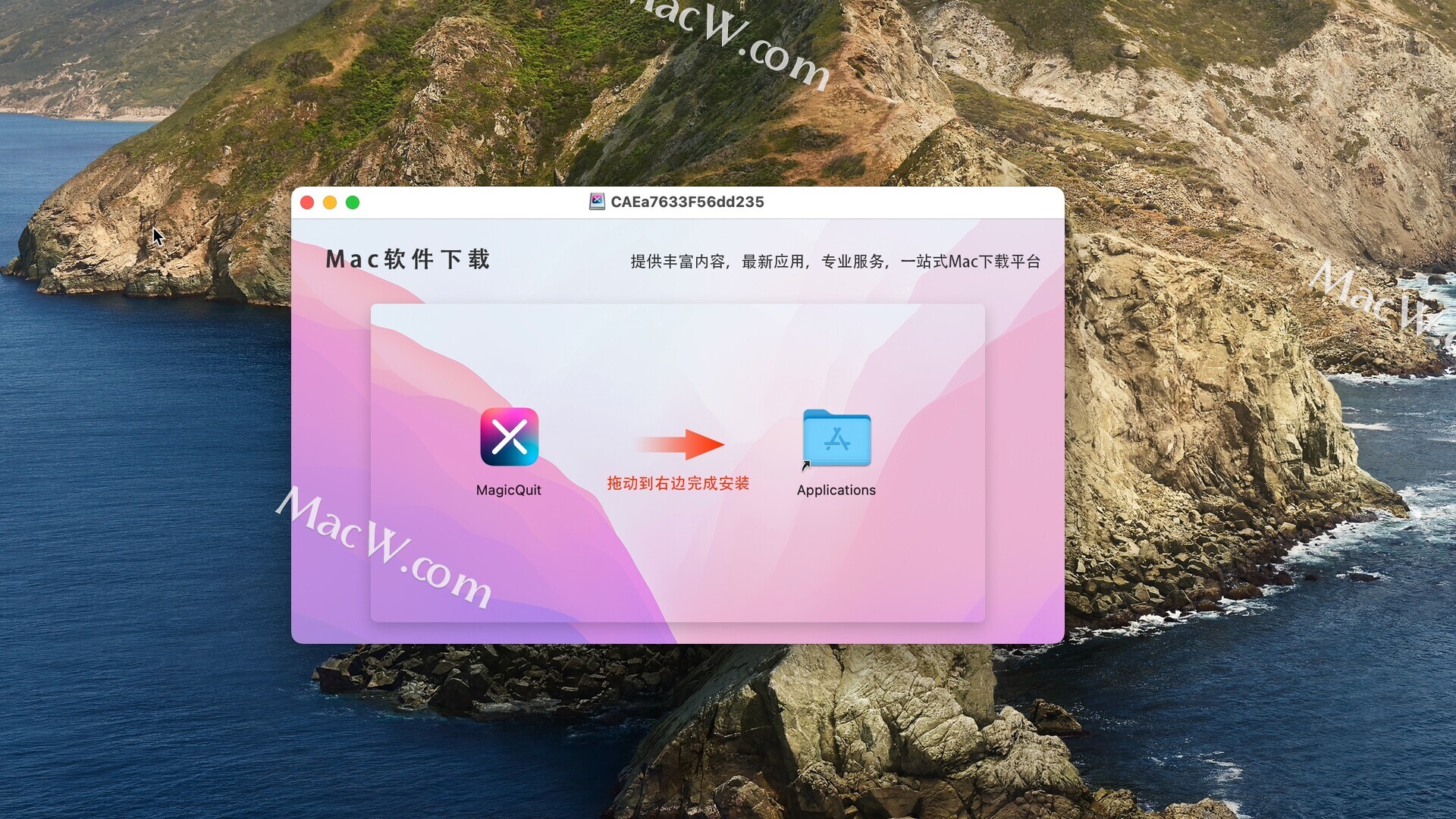 MagicQuit下载完成后打开,拖动左侧的软件到右侧应用程序中即可