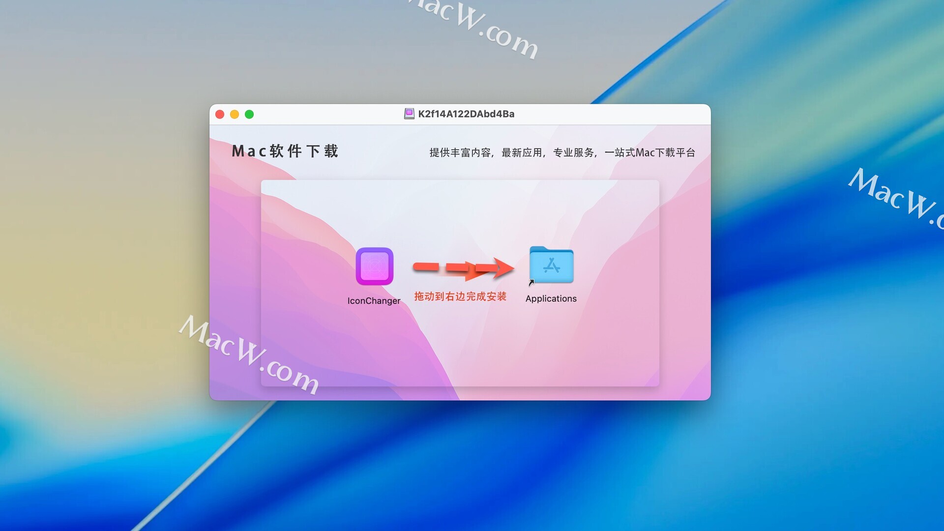 IconChanger下载完成后打开,拖动到左侧的软件到右侧应用程序中