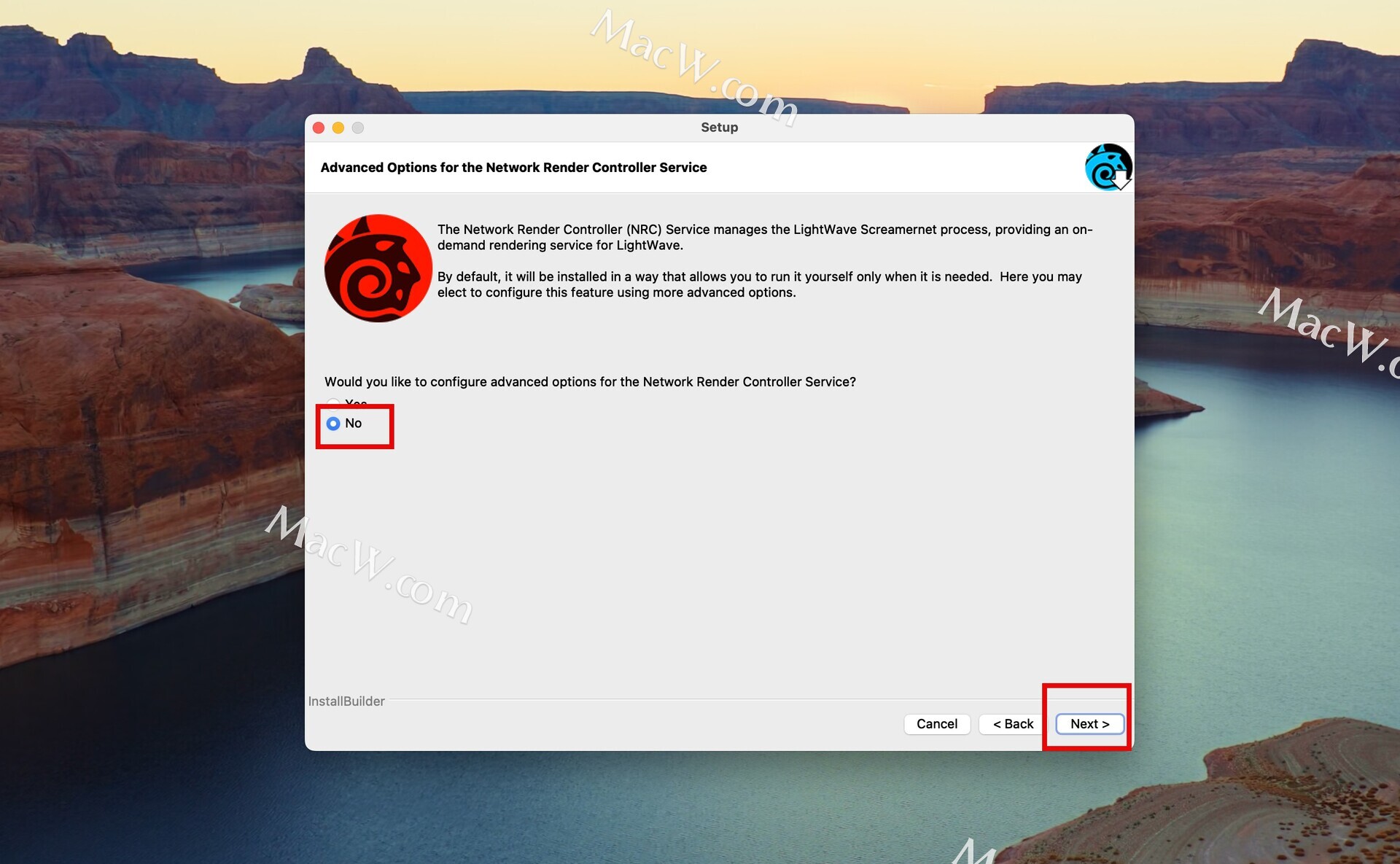 这一步选择NO,拒绝选择配置网络渲染控制器服务的高级选项,点击Next,如图:根据提示即可安装成功