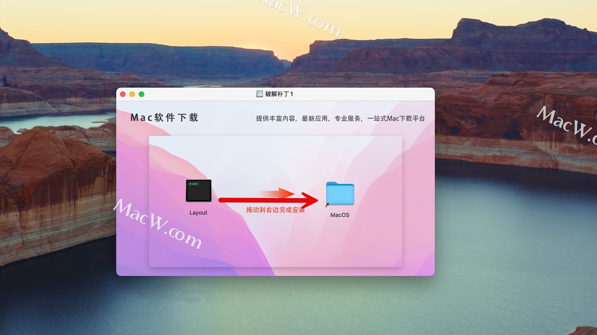 然后打开破解补丁1,将左侧的Layout拖动到右侧的macOS文件夹中替换即可,如图