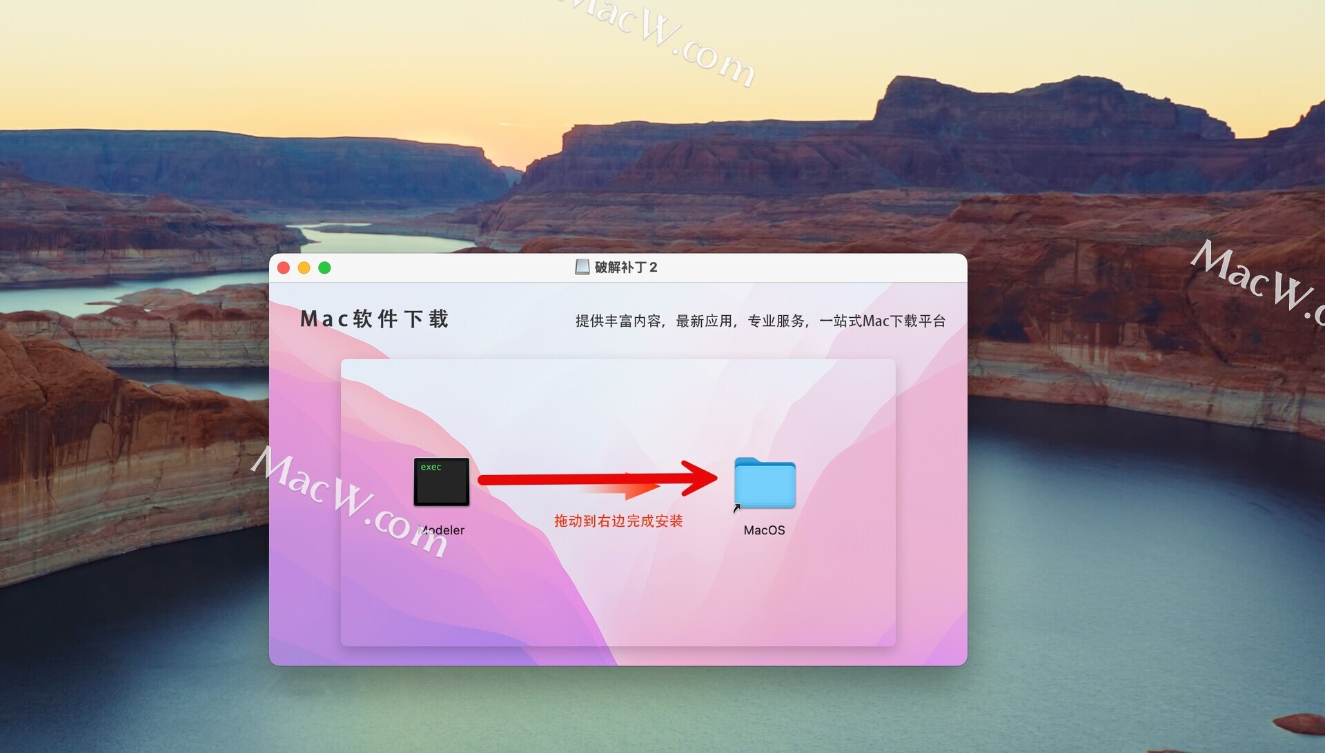再次打开破解补丁2,将左侧的Modeler拖动到右侧的macOS文件夹中替换即可,如图