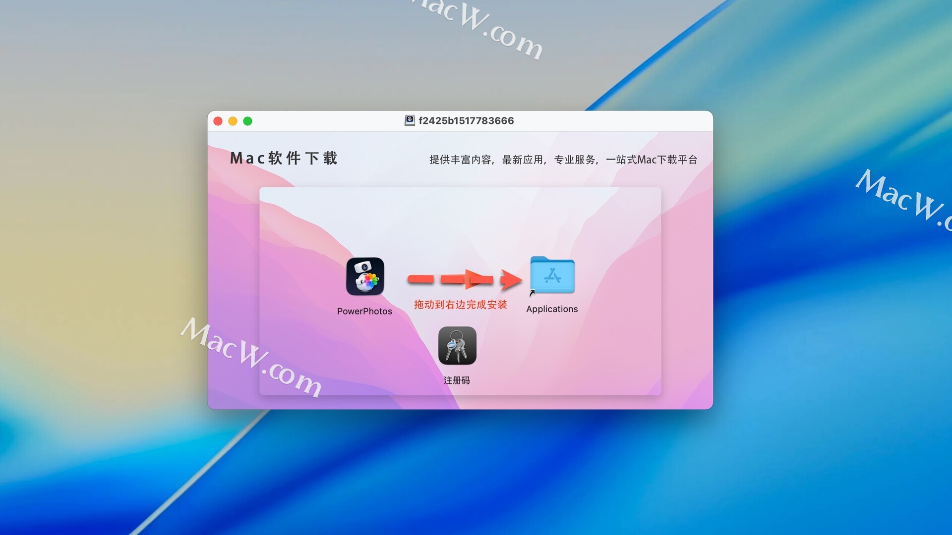 v3.2.5版本需要 macOS 14 或更高版本软件安装包下载完成后,拖动左侧的PowerPhotos到右侧应用程序中