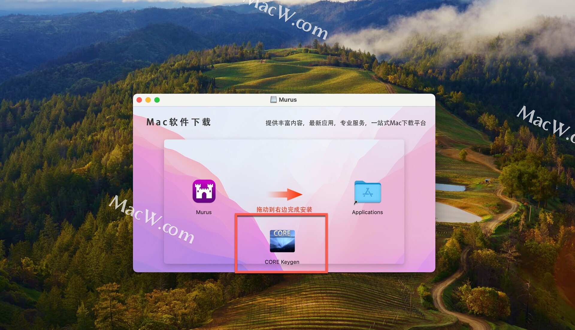 将左侧的Murus Pro 拖动到右侧的应用程序中,如图