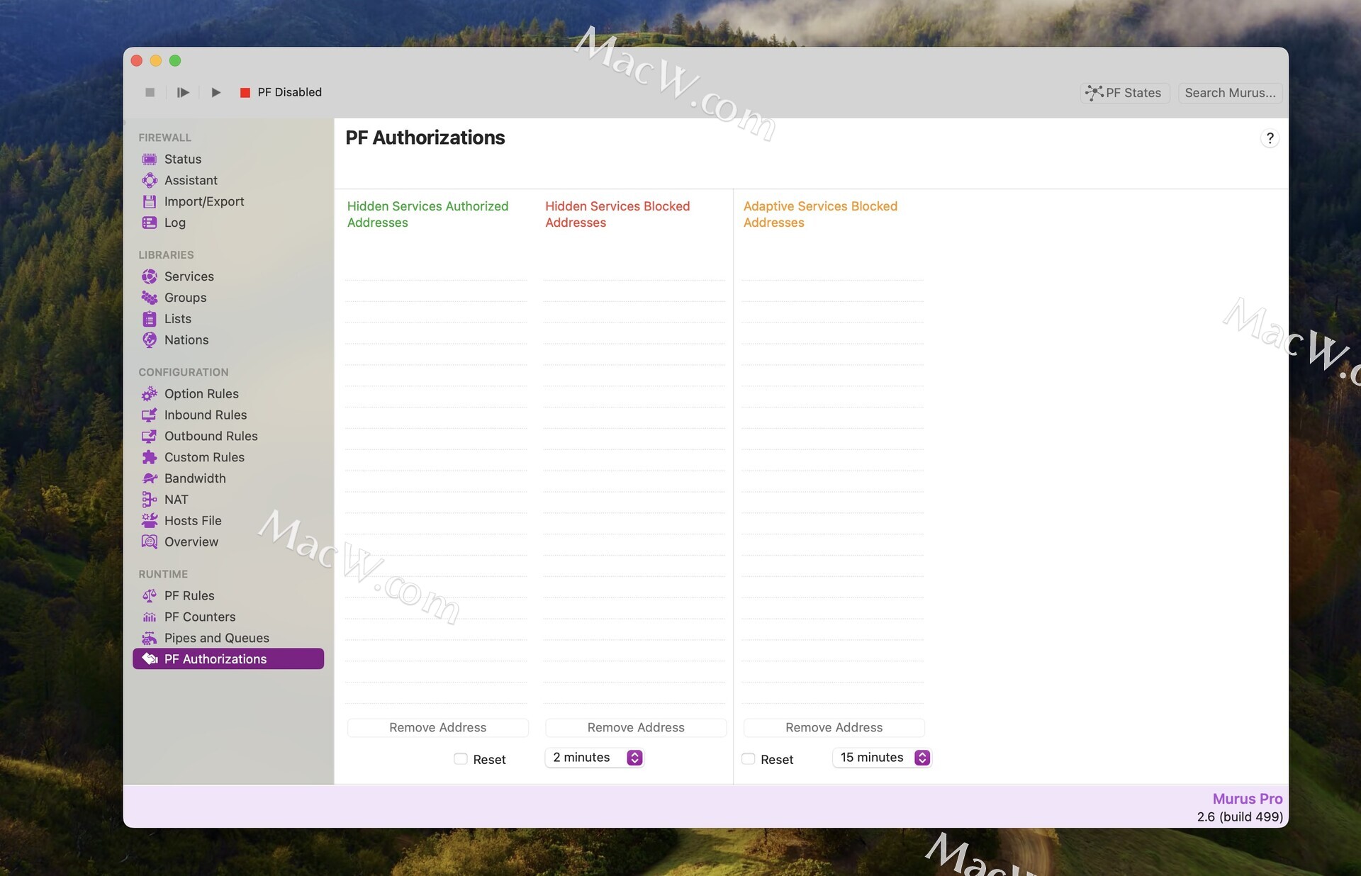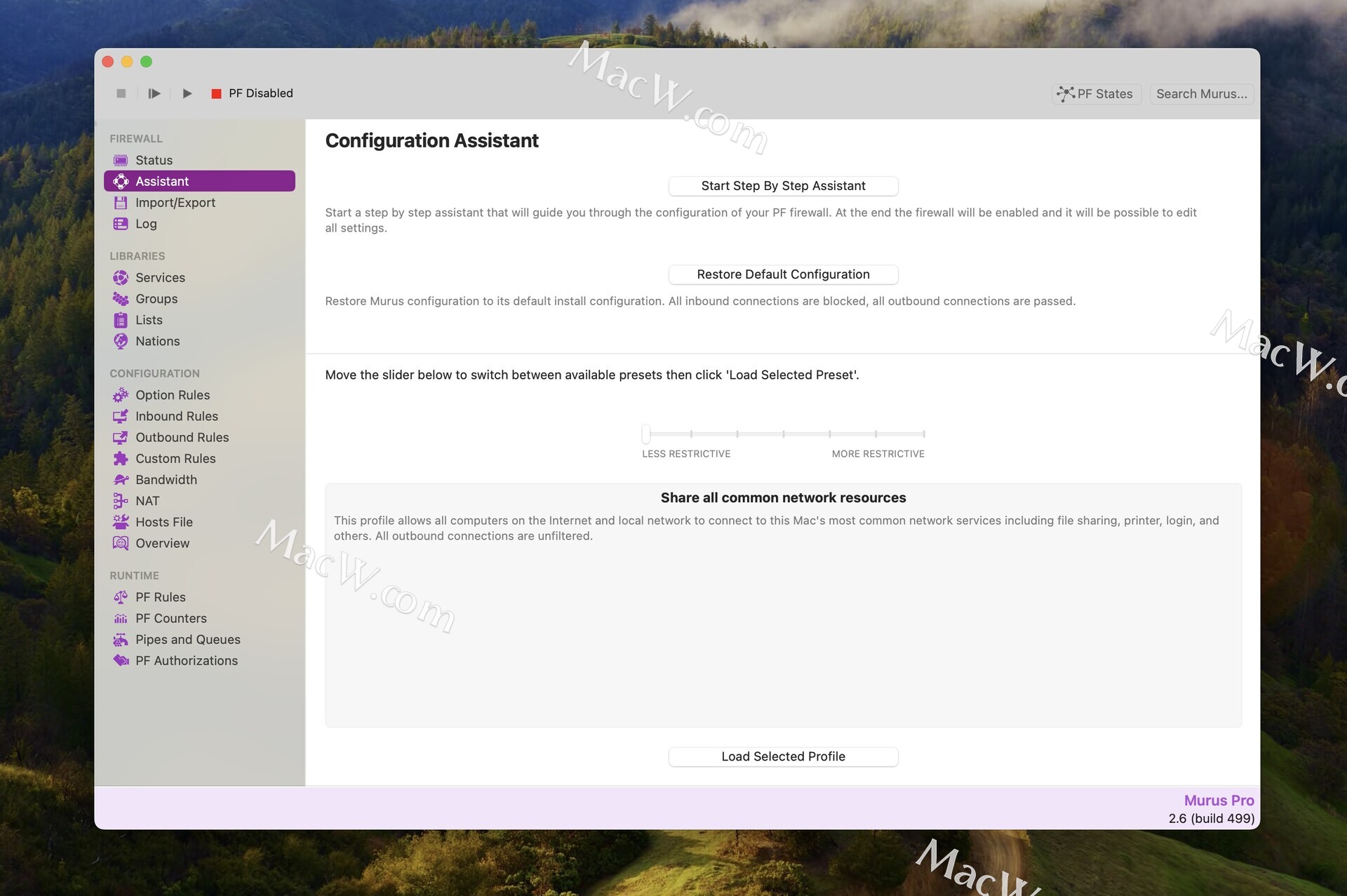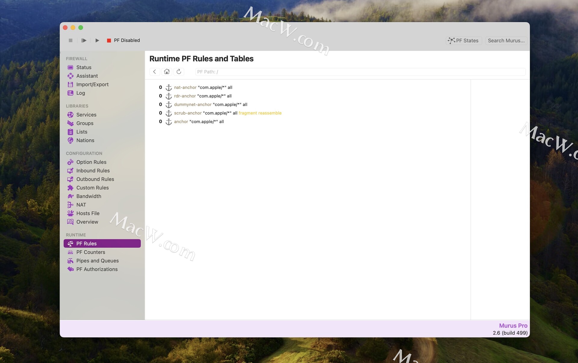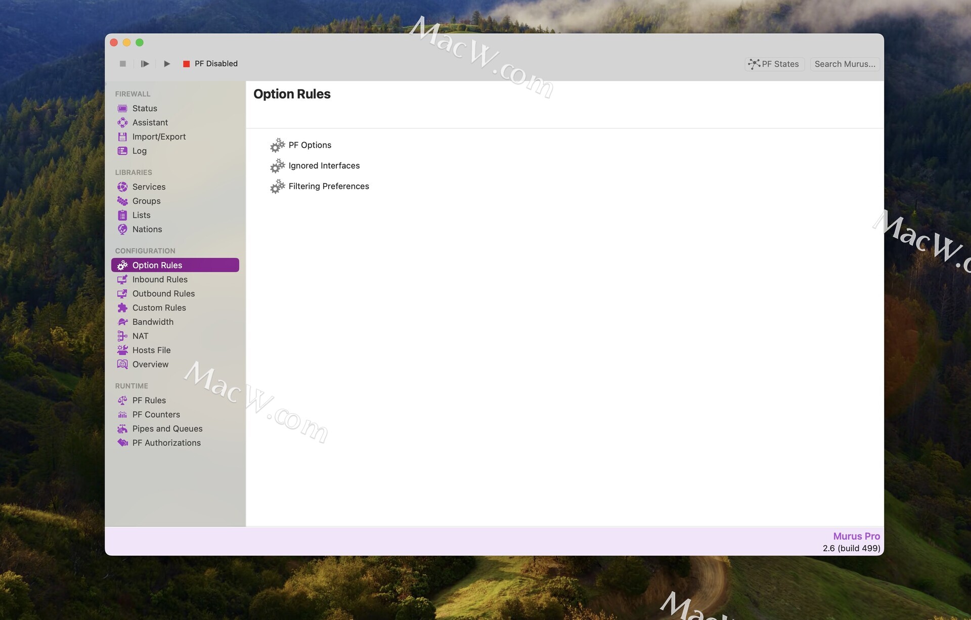 macOS 具有最好的网络防火墙之一:PF(数据包过滤器)。它采用“引擎盖下”的方式,默认情况下安装和禁用。Murus 的目的是释放其潜力。凭借其简单直观的基于图标和基于拖放的界面、可视化抽象层和友好的 PF 防火墙视图,它是一款精简而实用的工具,可保护您的 Mac 和网络。Murus 的