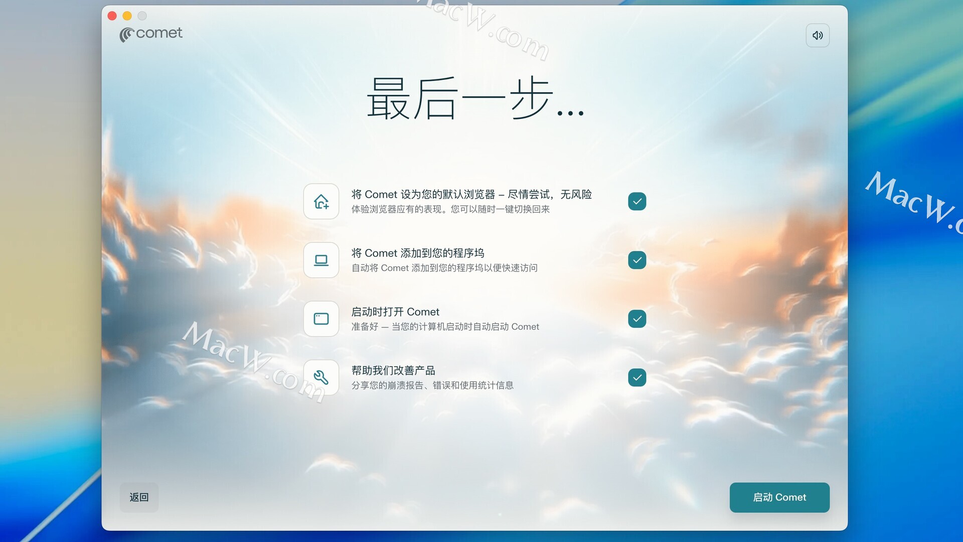 Comet浏览器下载完成后打开,拖动左侧的Comet到右侧应用程序中即可