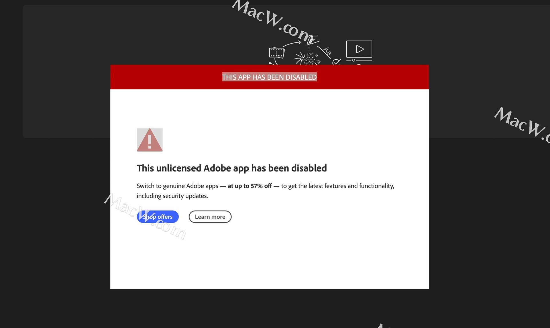 注意事项:如试用pr过程中提示This non-genuine Adobe app has been disabled弹窗,如图