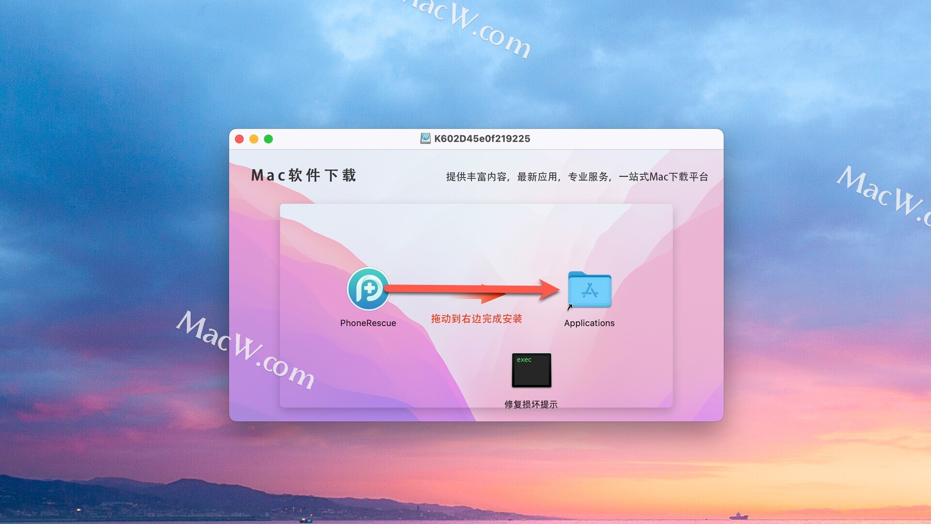 将左侧的PhoneRescue拖动到右侧的applications中即可,如图