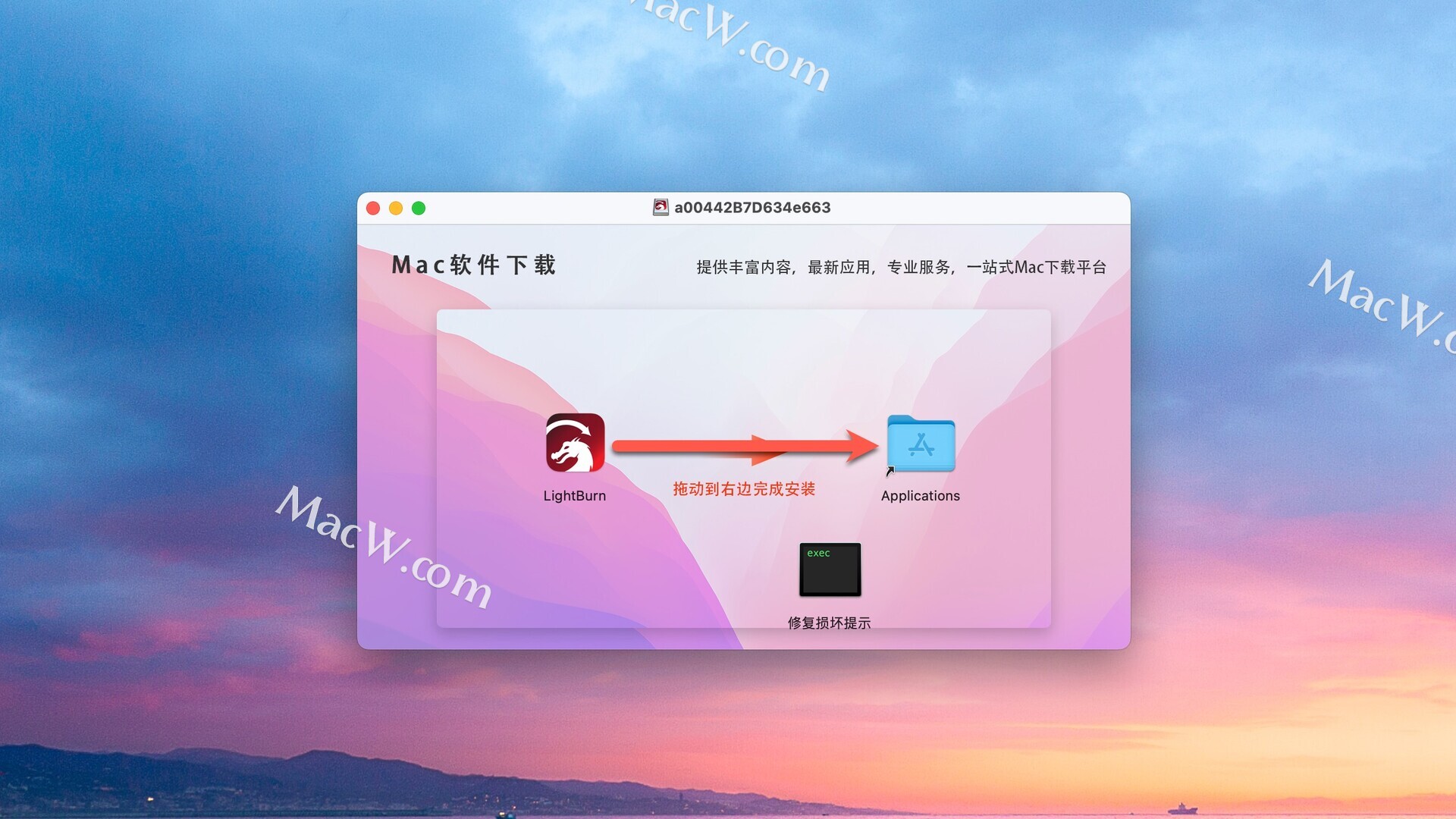将左侧的LightBurn 拖动到右侧的应用程序中即可,如图