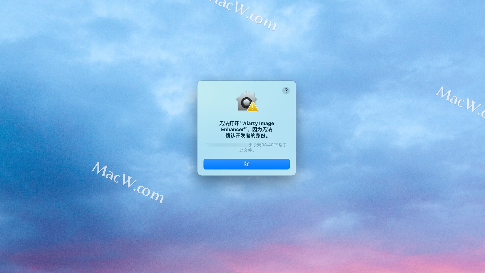 如果打开应用提示 无法打开“Aiarty Image Enhancer”,因为无法确认开发者的身份 点击好