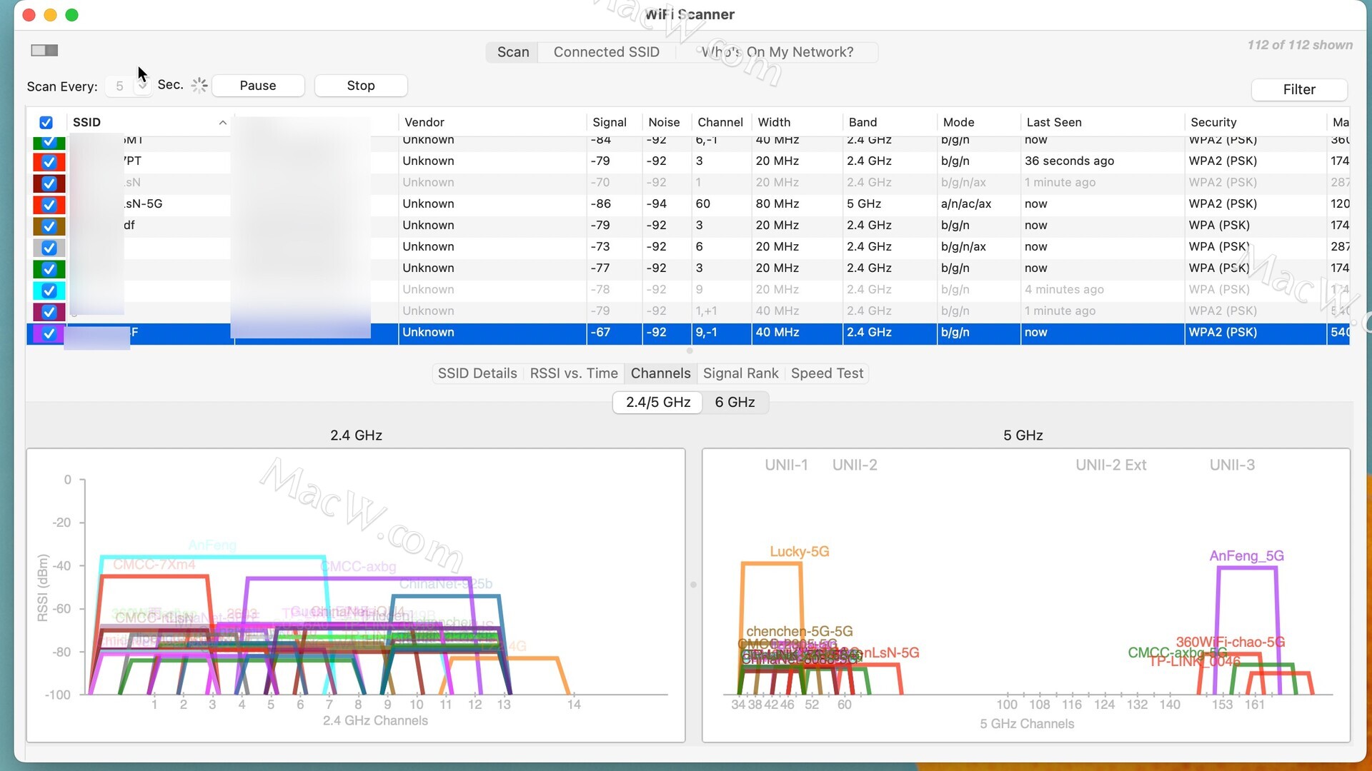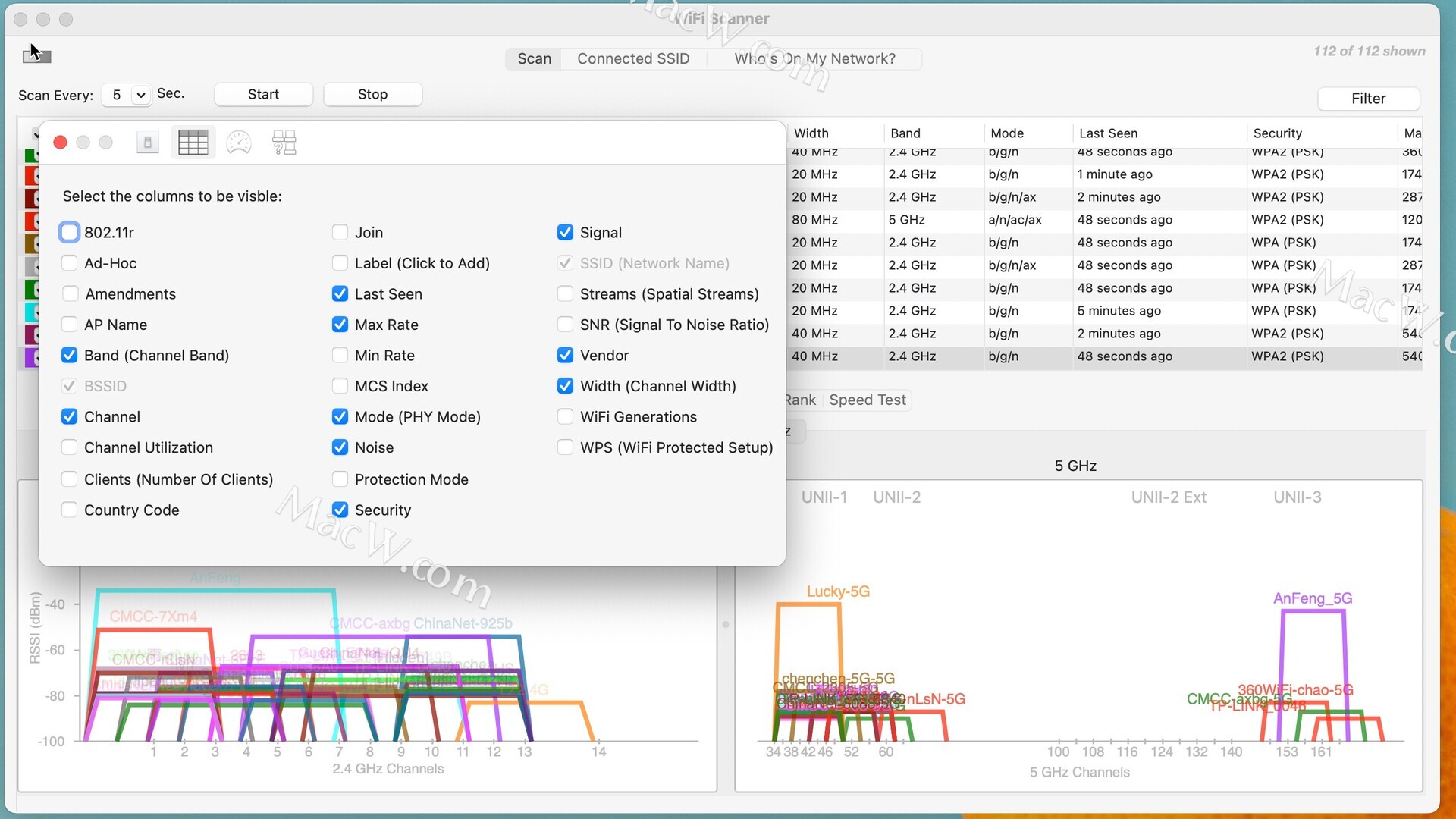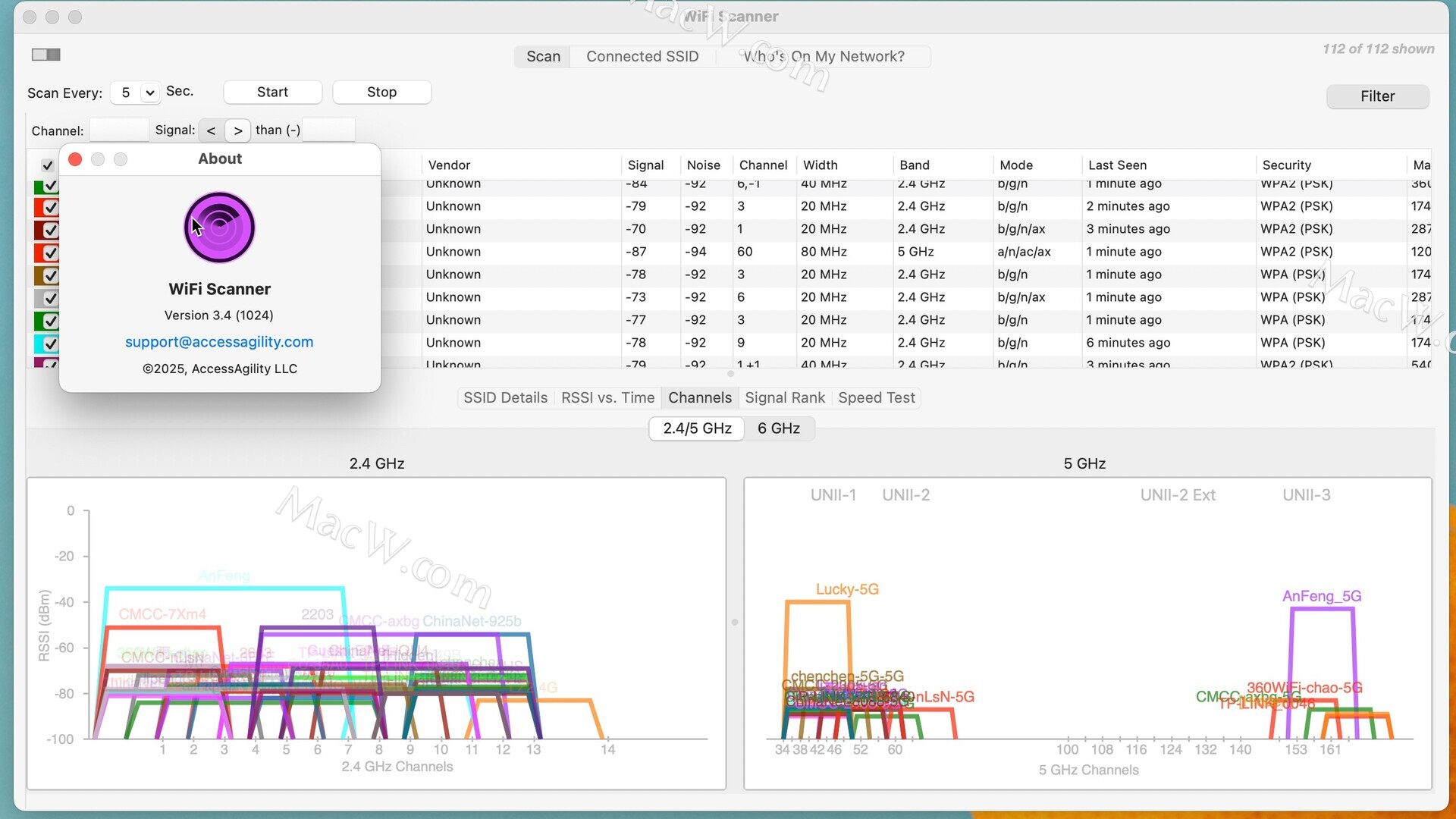 此外,WiFi Scanner for Mac还能够帮助用户选择最佳的WiFi网络和信道,优化网络性能,提高网络的稳定性和传输速率。无论是对于专业的网络管理员还是日常用户,这款软件都是优化WiFi体验、提升网络效率的重要工具。