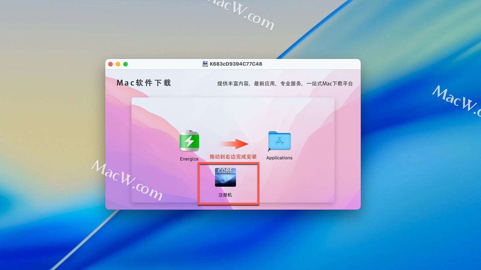 Energiza下载完成后打开,拖动左侧的软件到右侧应用程序中即可