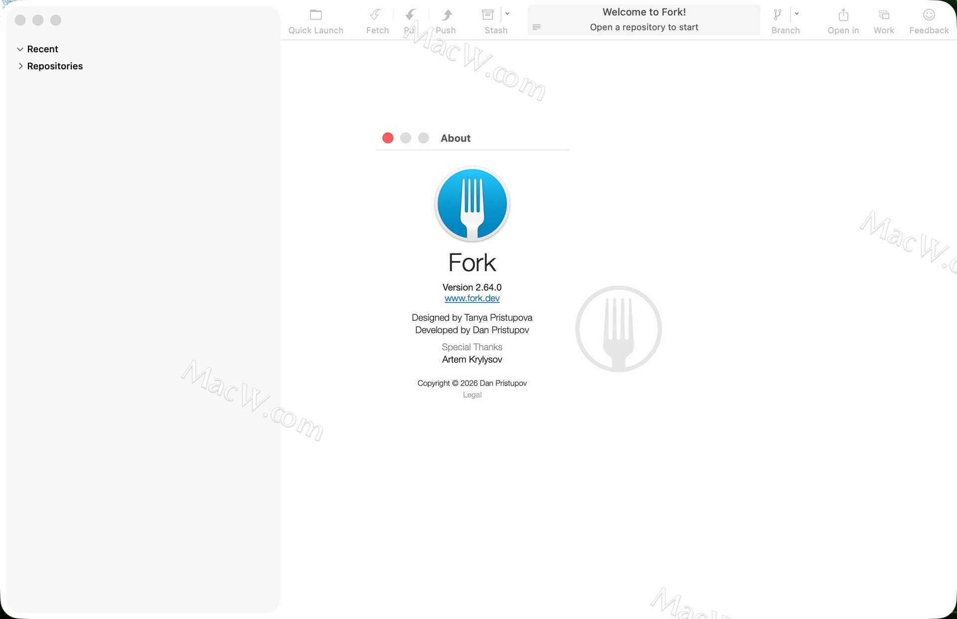 Fork for Mac是一款运行在Mac平台上的Git客户端,Fork Mac版具备基本的取、推、提交、修改、创建和删除分支和标签、创建和删除远程备份等功能,还有实用的差异查看器,你可以通过清晰的视图快速发现源代码中的更改。测试环境:MacOS 26.2