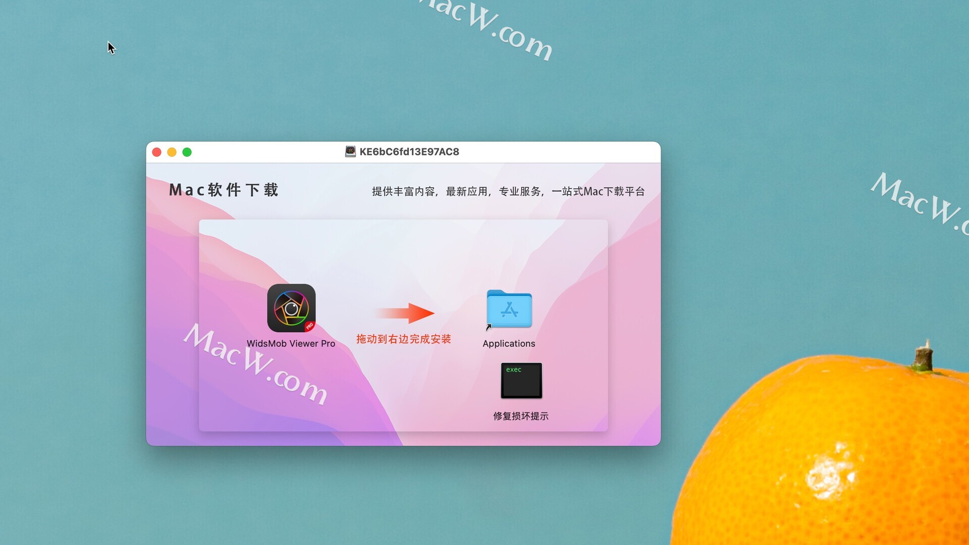 镜像包下载完成后,将左侧WidsMob Viewer Pro拖拽至右侧Applicatios应用程序中进行安装。