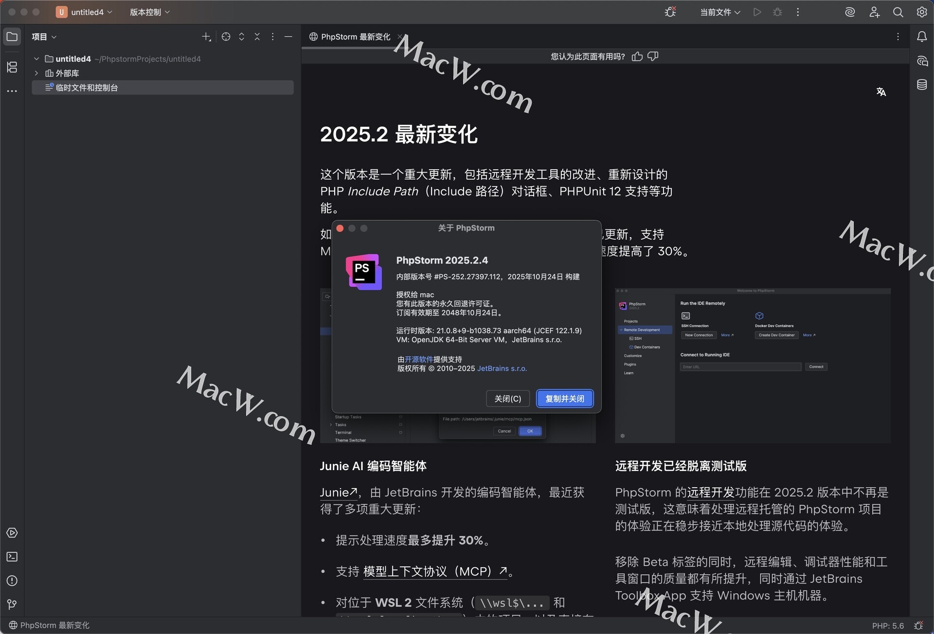 JetBrains PhpStorm 2025 是一款 PHP 集成开发环境(IDE),专为提升 PHP 开发者的效率与体验而设计。该版本在代码智能、调试、框架支持、AI 辅助等方面进行了全面升级。