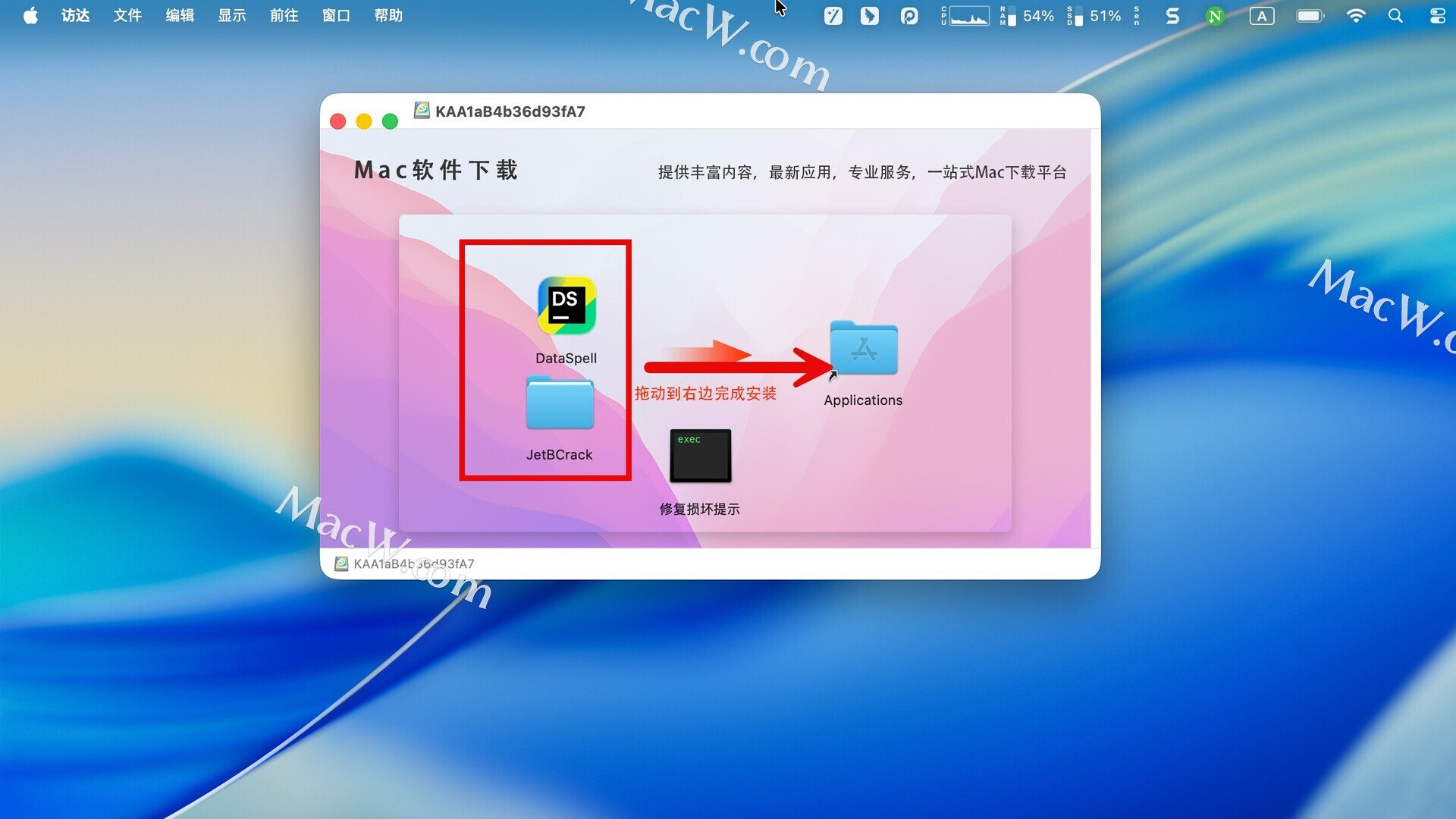 打开下载好的软件包,拖动软件和JetBCrack到右边的文件夹中进行安装