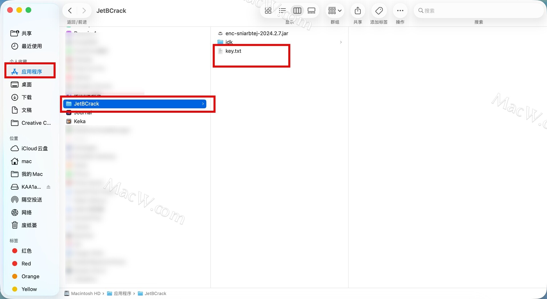 打开应用程序,在JetBCrack文件夹中找到key.txt文件并打开