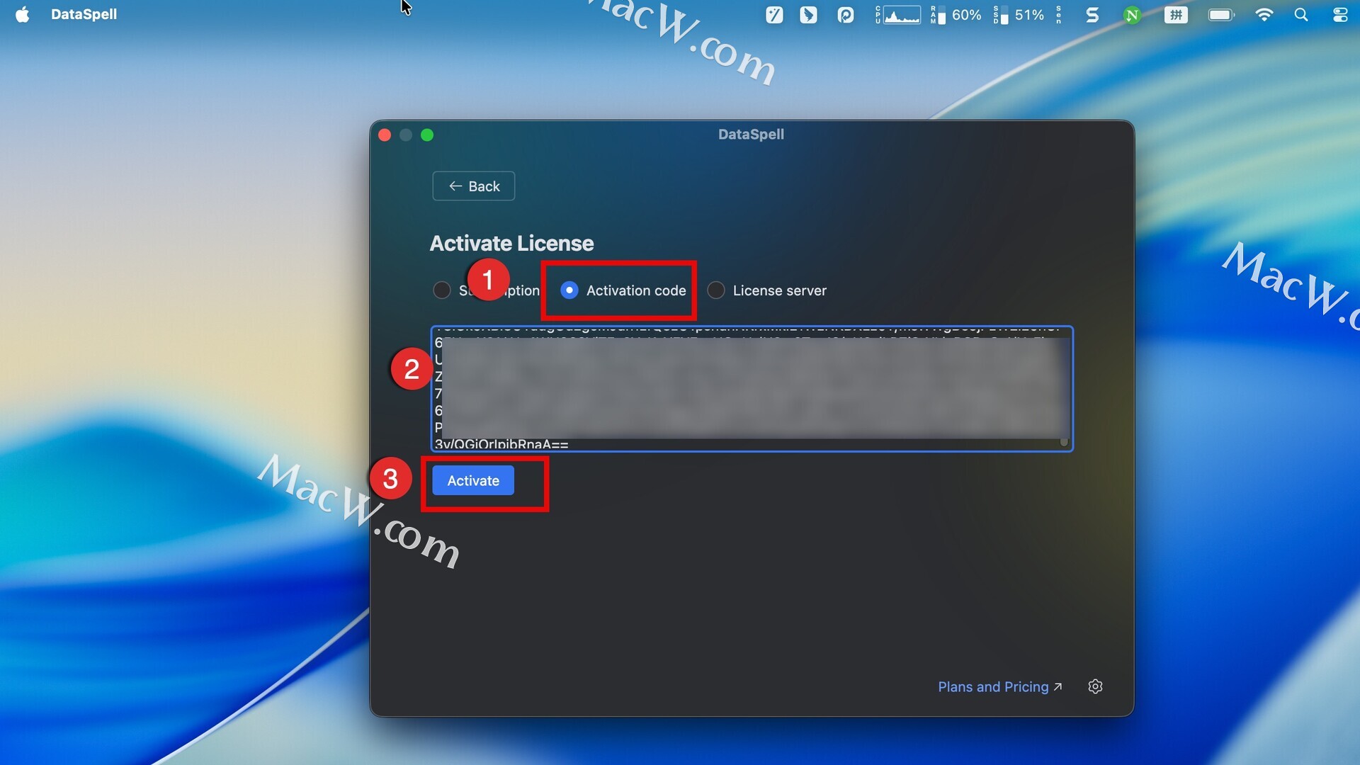 选择Activation code将注册码复制到激活页面,点击Activave即可激活