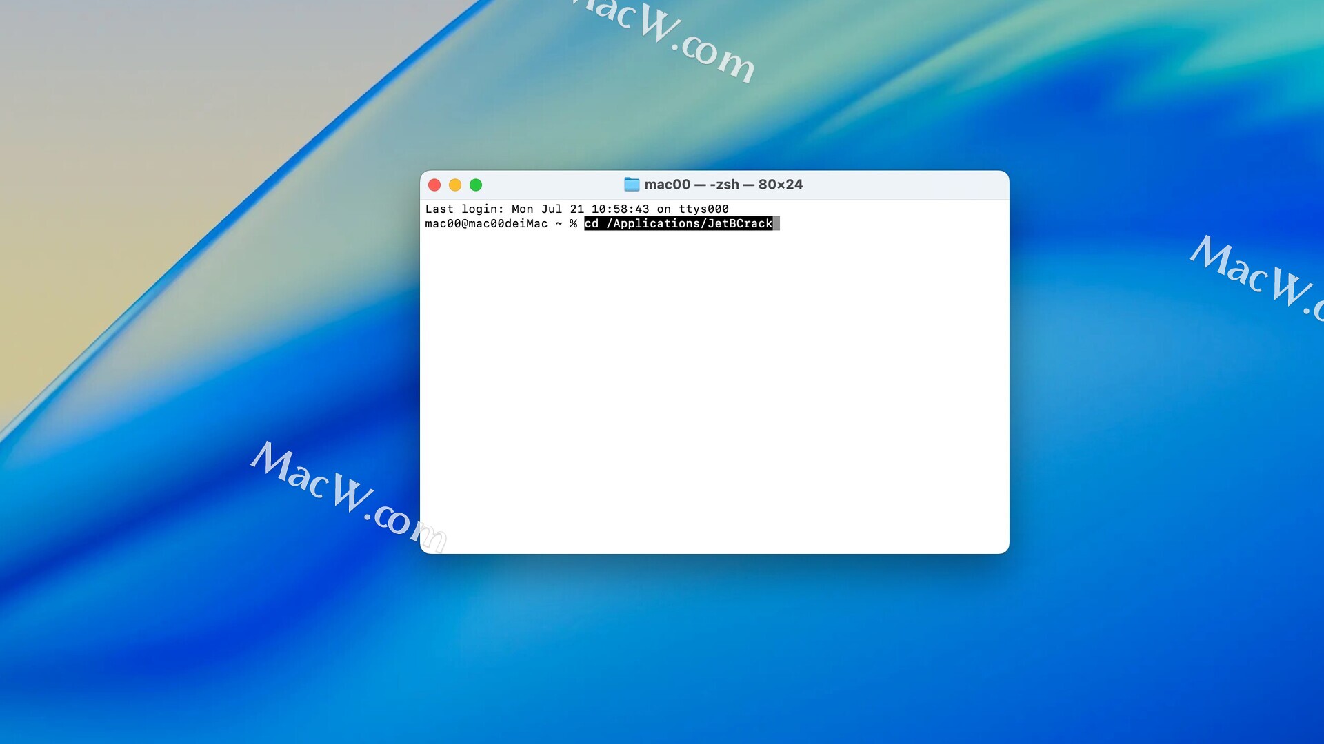 打开终端,复制cd /Applications/JetBCrack到终端后回车
