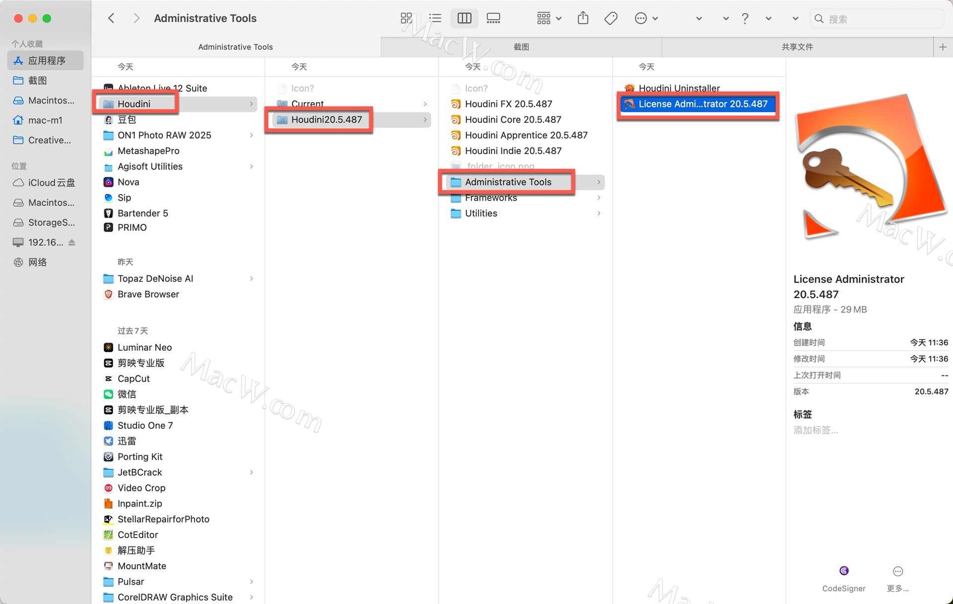 打开应用程序/Houdini/Houdini20.5.487/Administrative Tools/License Administrator 20.5.487文件