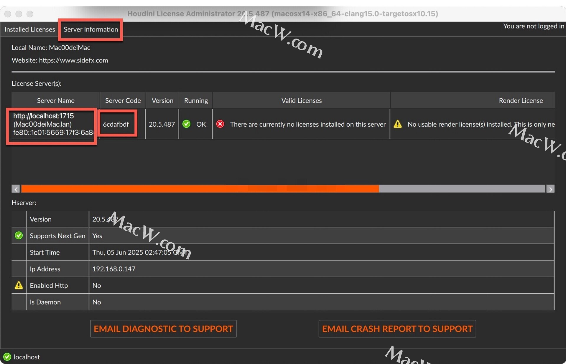 点击Server Information选项卡,找到 Server Name 和Server Code记录备用(例如我的电脑:Server Name:Mac00deiMac.lan Server Code :6cdafbdf)