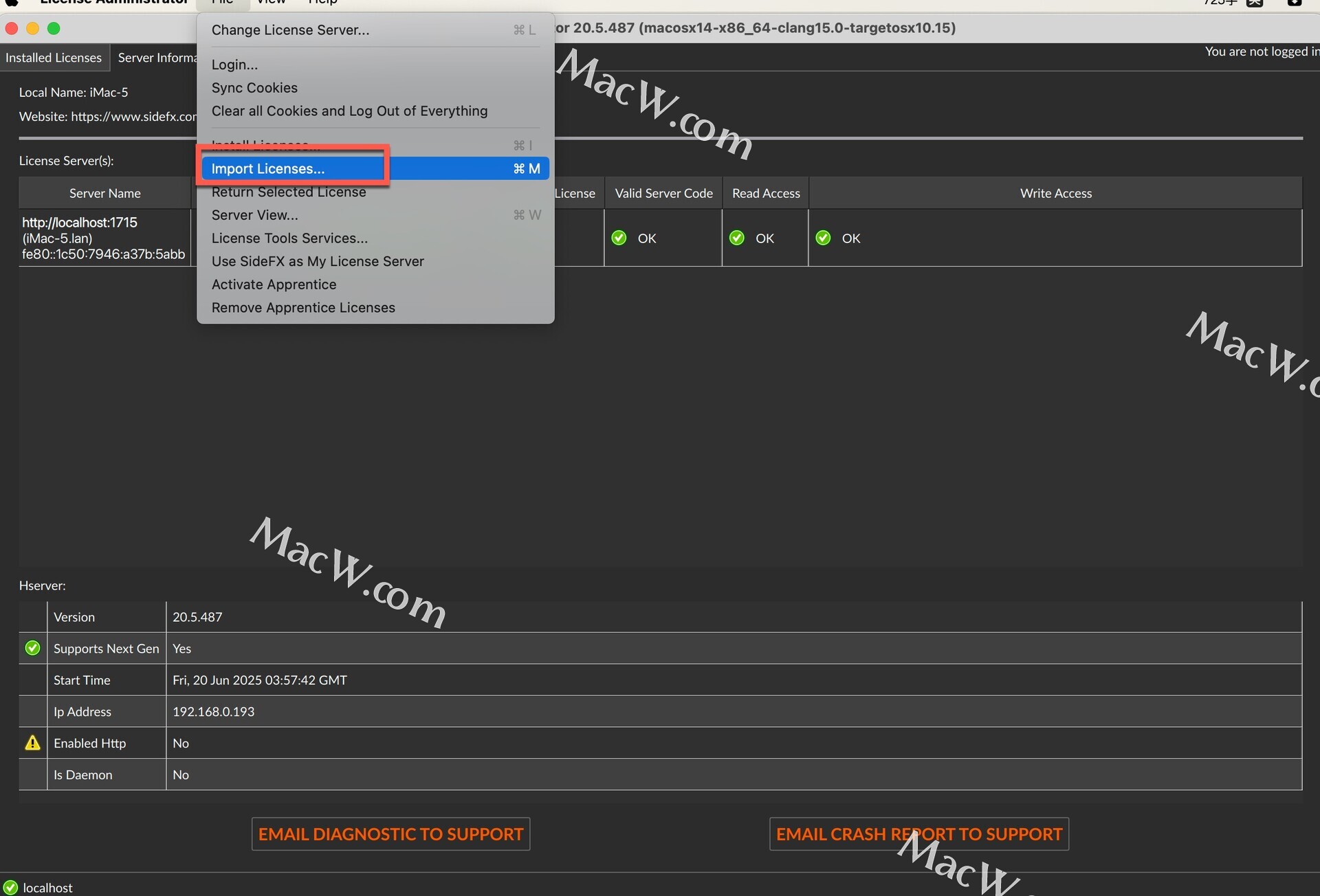 回到Houdini License Administrator 窗口页面,在菜单栏打开File -Import Licenses...