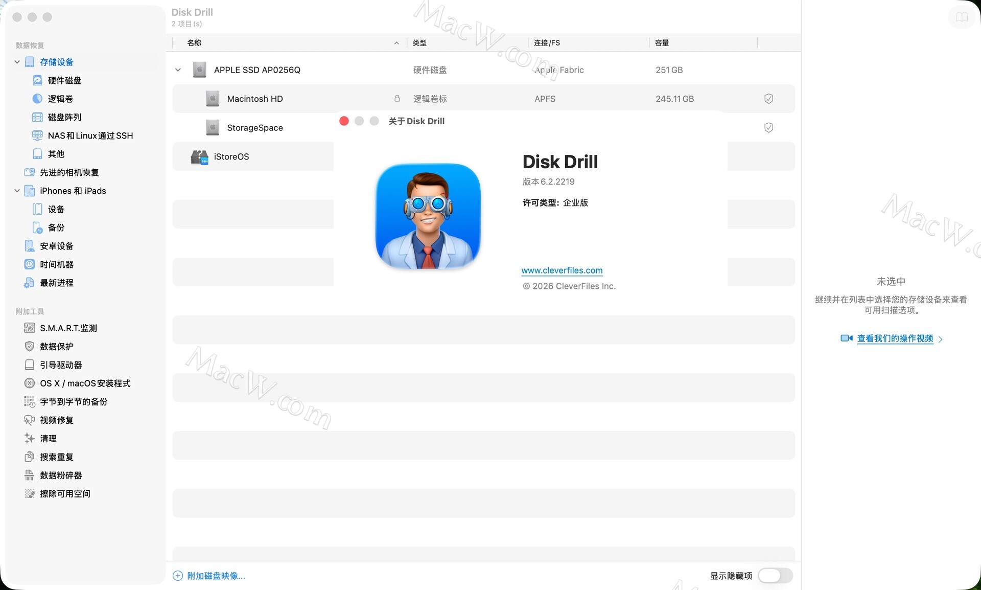 Disk Drill for Mac是Mac OS平台上一款数据恢复软件,能够恢复你不小心删除的重要文件,Disk Drill 具备多种功能,可以帮您恢复丢失的分区,找回您的数据,万能分区搜索、扫描丢失的 HFS+ 分区和重建 HFS+ 对话文件。测试环境:MacOS 26.2