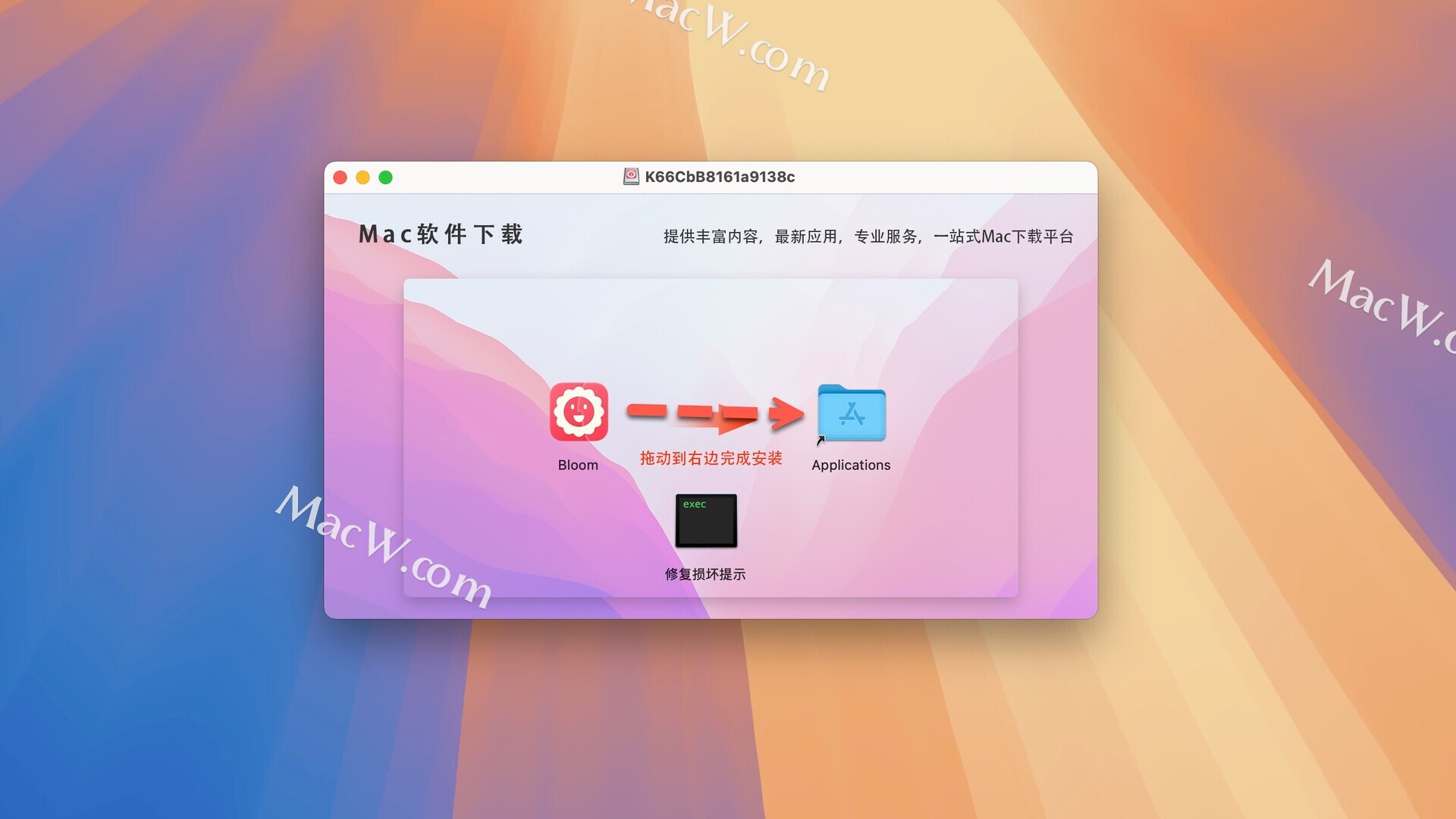 Bloom破解版下载完成后打开,拖动左侧的软件到右侧应用程序中