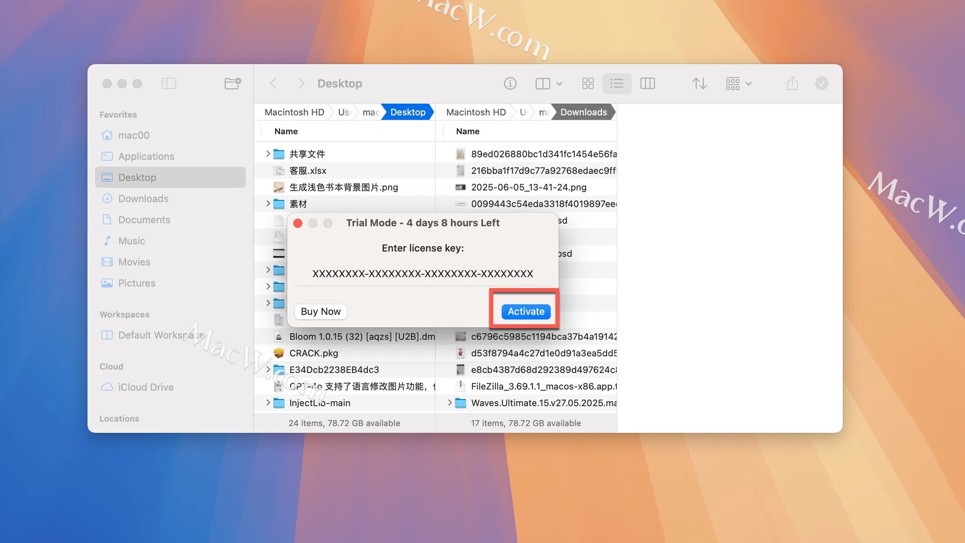 弹出注册窗口,输入XXXXXXXX-XXXXXXXX-XXXXXXXX-XXXXXXXX,点击Activate