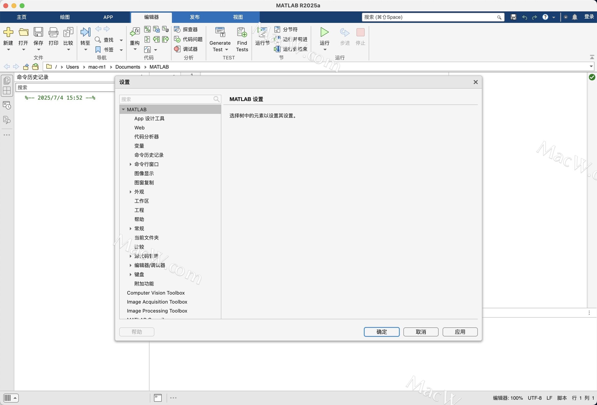 MATLAB R2025a 是一种强大的科学计算软件,适用于 Mac 平台。它提供了丰富的功能和工具,用于数值计算、数据分析、可视化、机器学习和算法开发等领域。