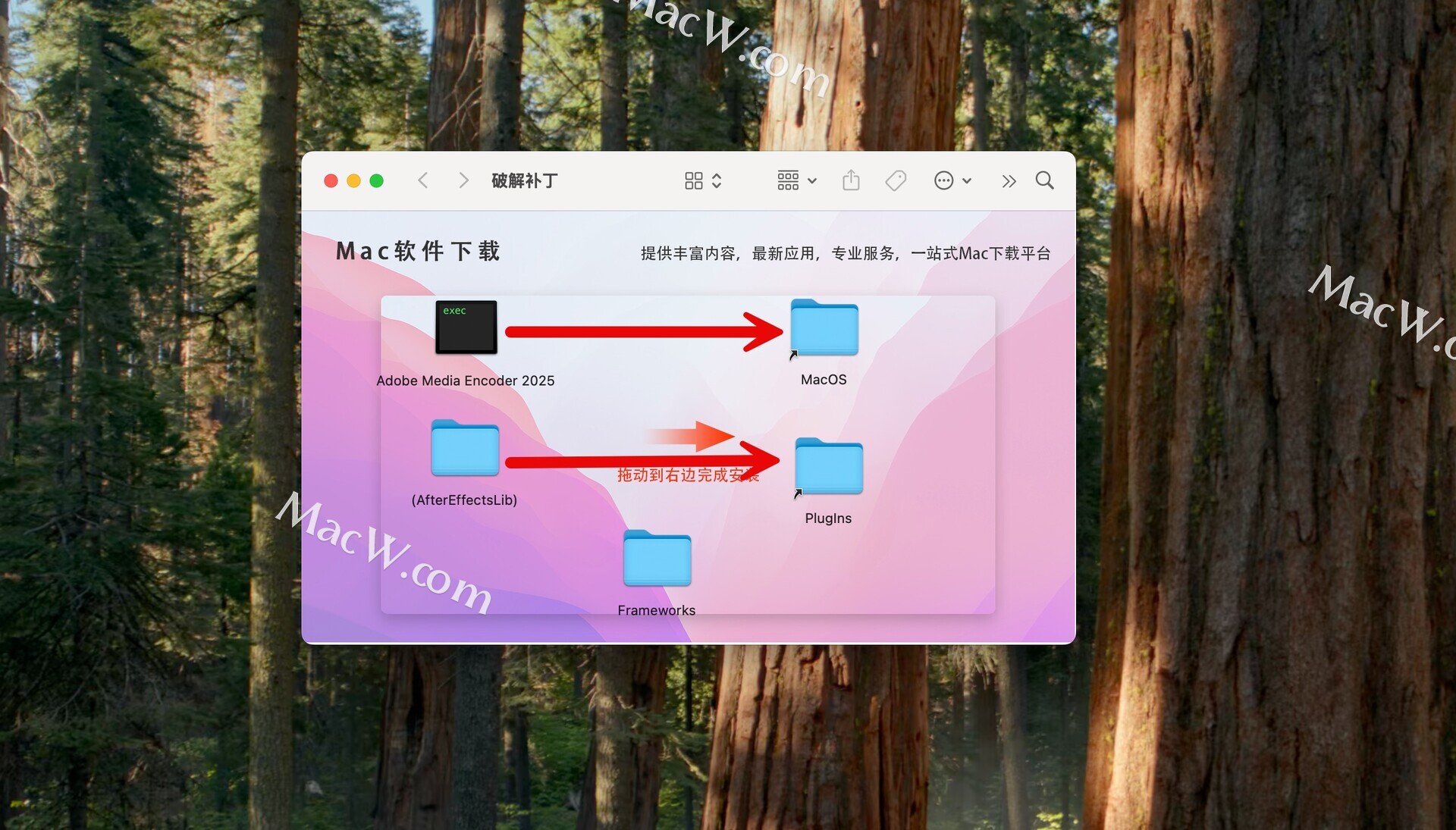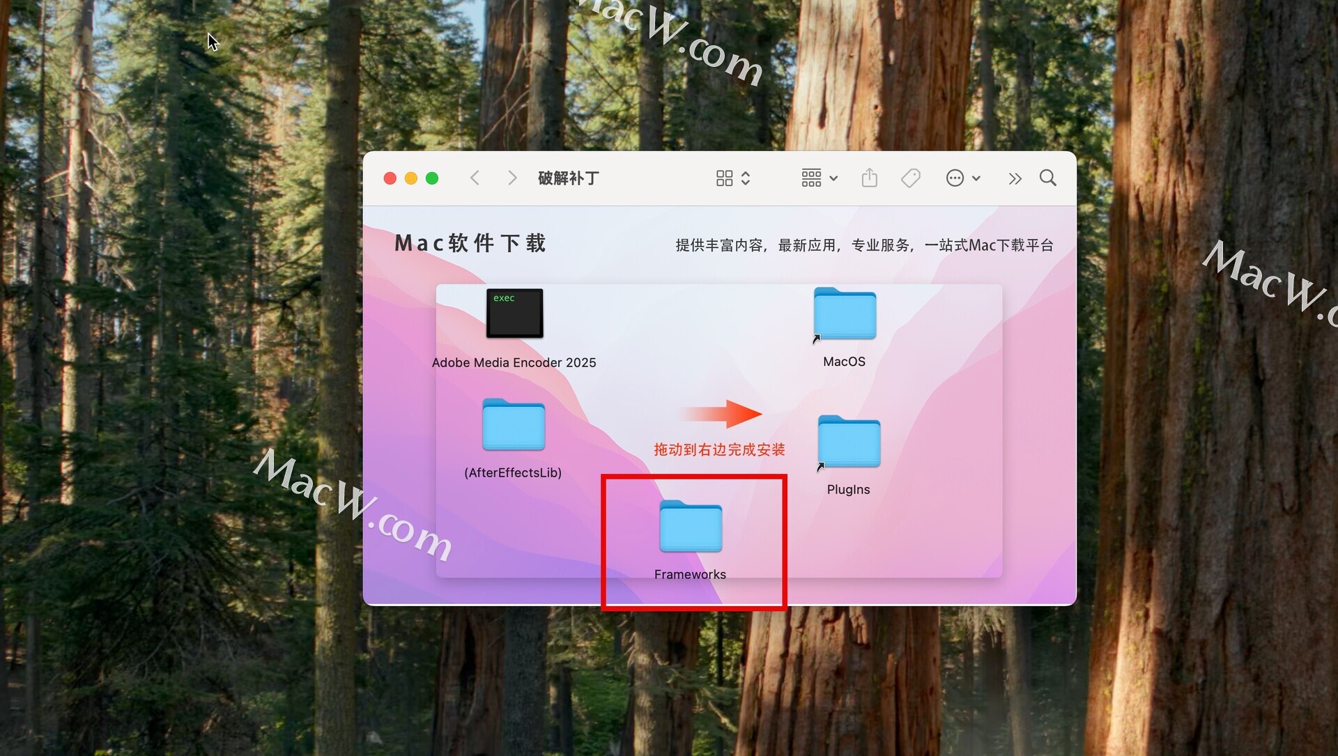 删除Frameworks文件夹,并将安装包内的Frameworks文件夹放入,如图