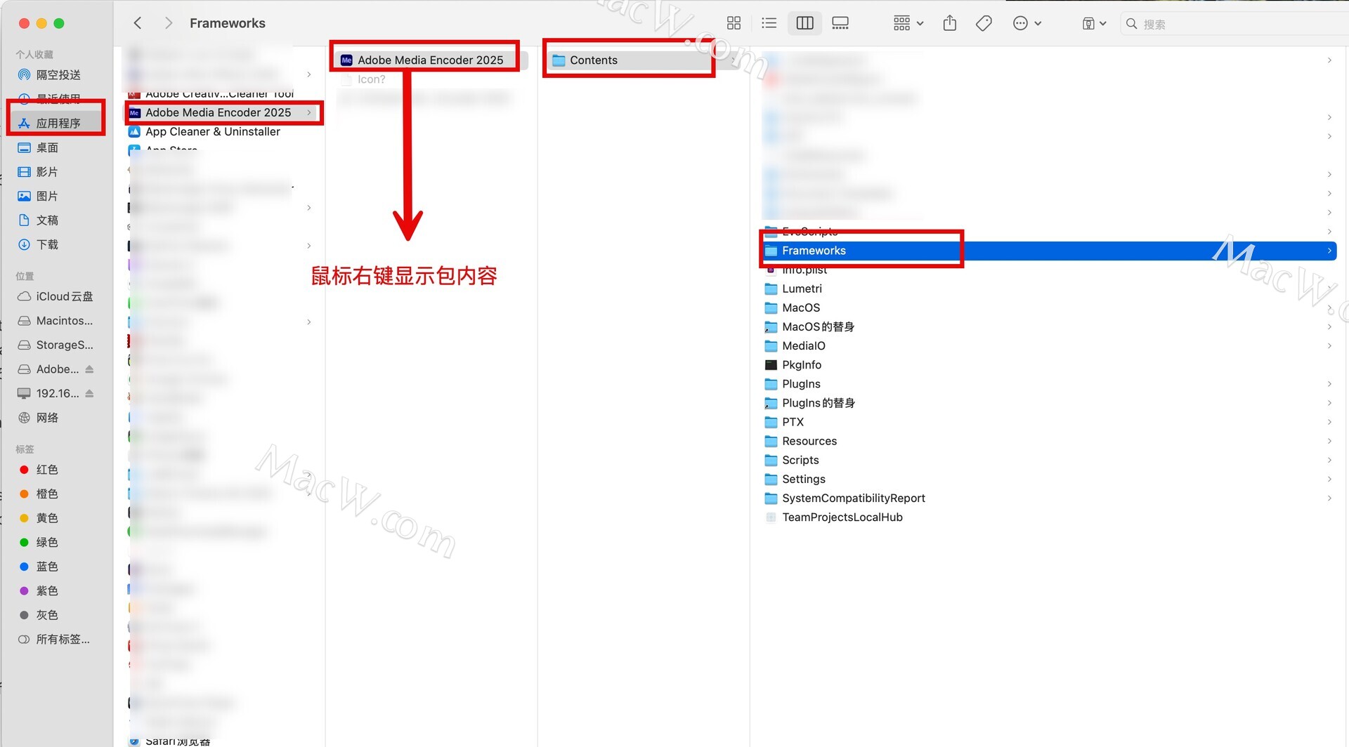 按照下图路径找到Frameworks文件夹,如图