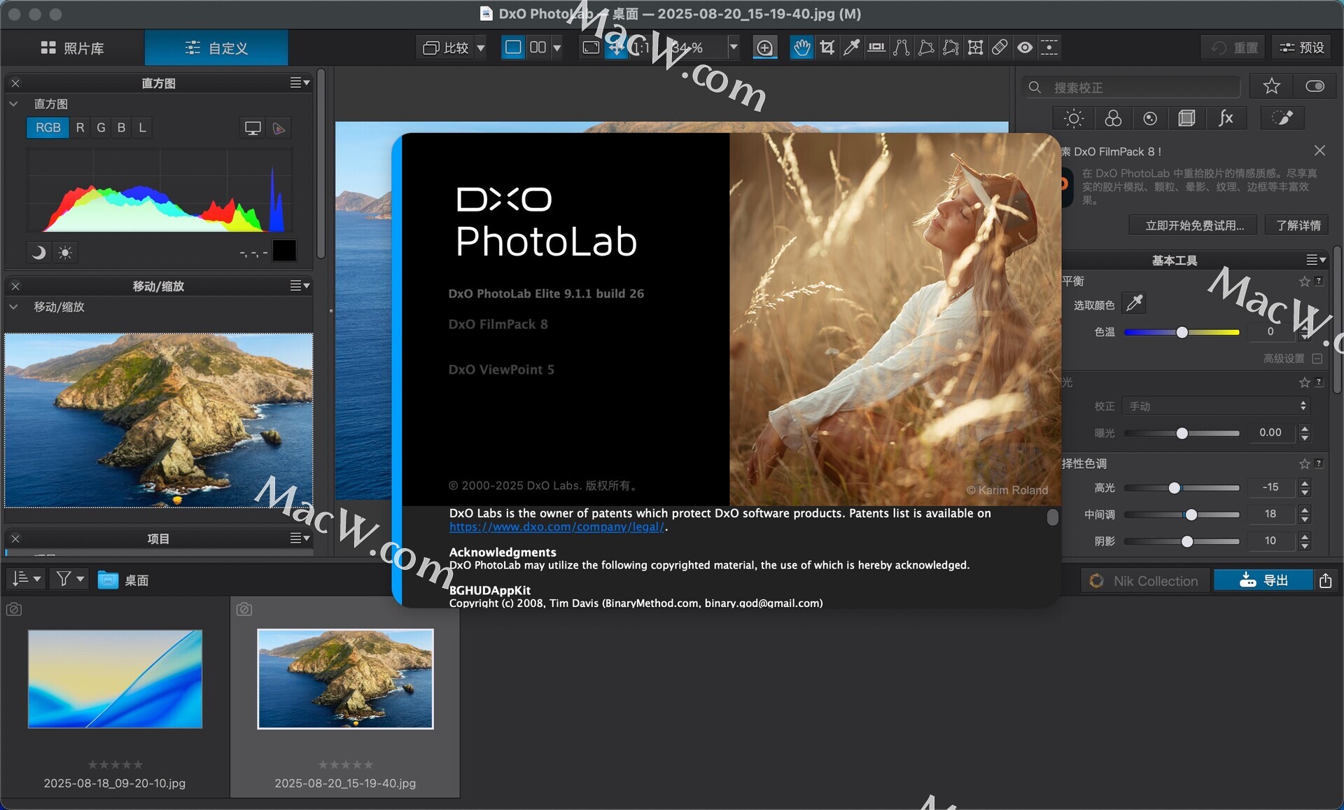 DxO PhotoLab 9 for mac 是至为先进的端到端照片编辑软件,配备由机器学习驱动的开创性 DeepPRIME 降噪、可呈现无与伦比的图像品质的 DxO 模块以及为直观局部调整工具进行补充的全新 DxO AI 蒙版。测试环境:MacOS 15.5