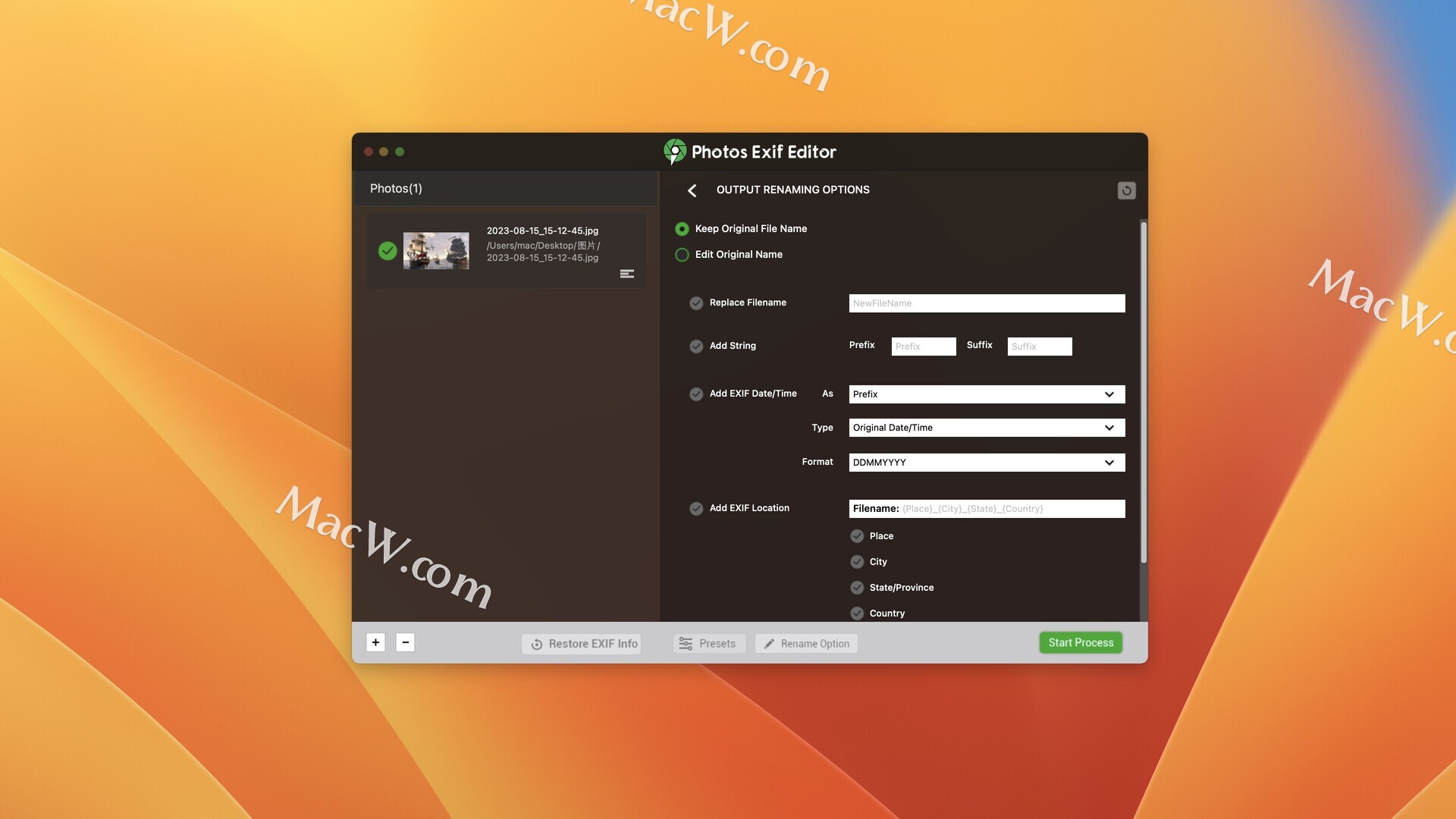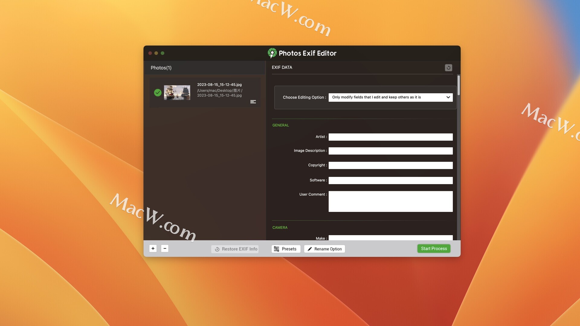 进行更改后,只需点击START PROCESS按钮将其应用并保存编辑过的照片。已处理的照片现在将反映已编辑的元数据。