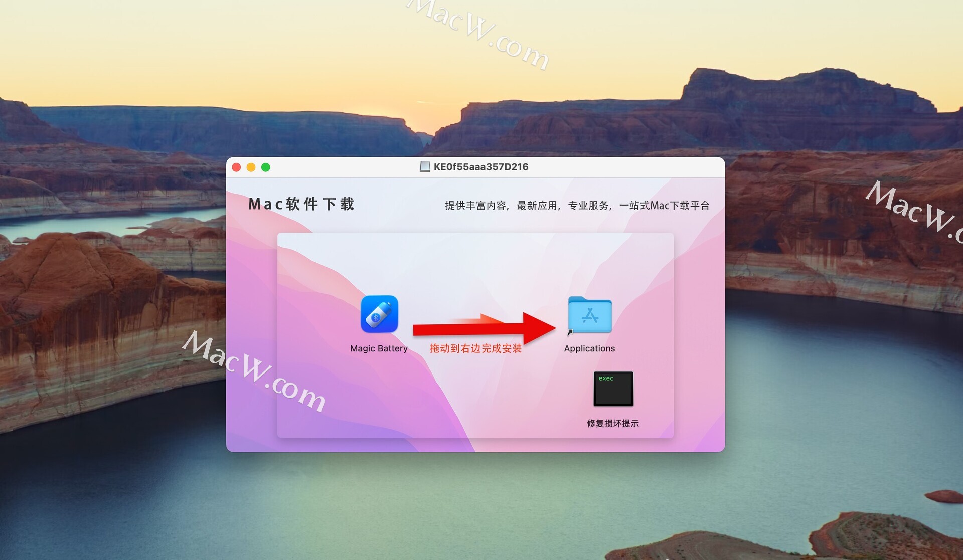 Magic Battery下载完成后,拖动左侧的Magic Battery