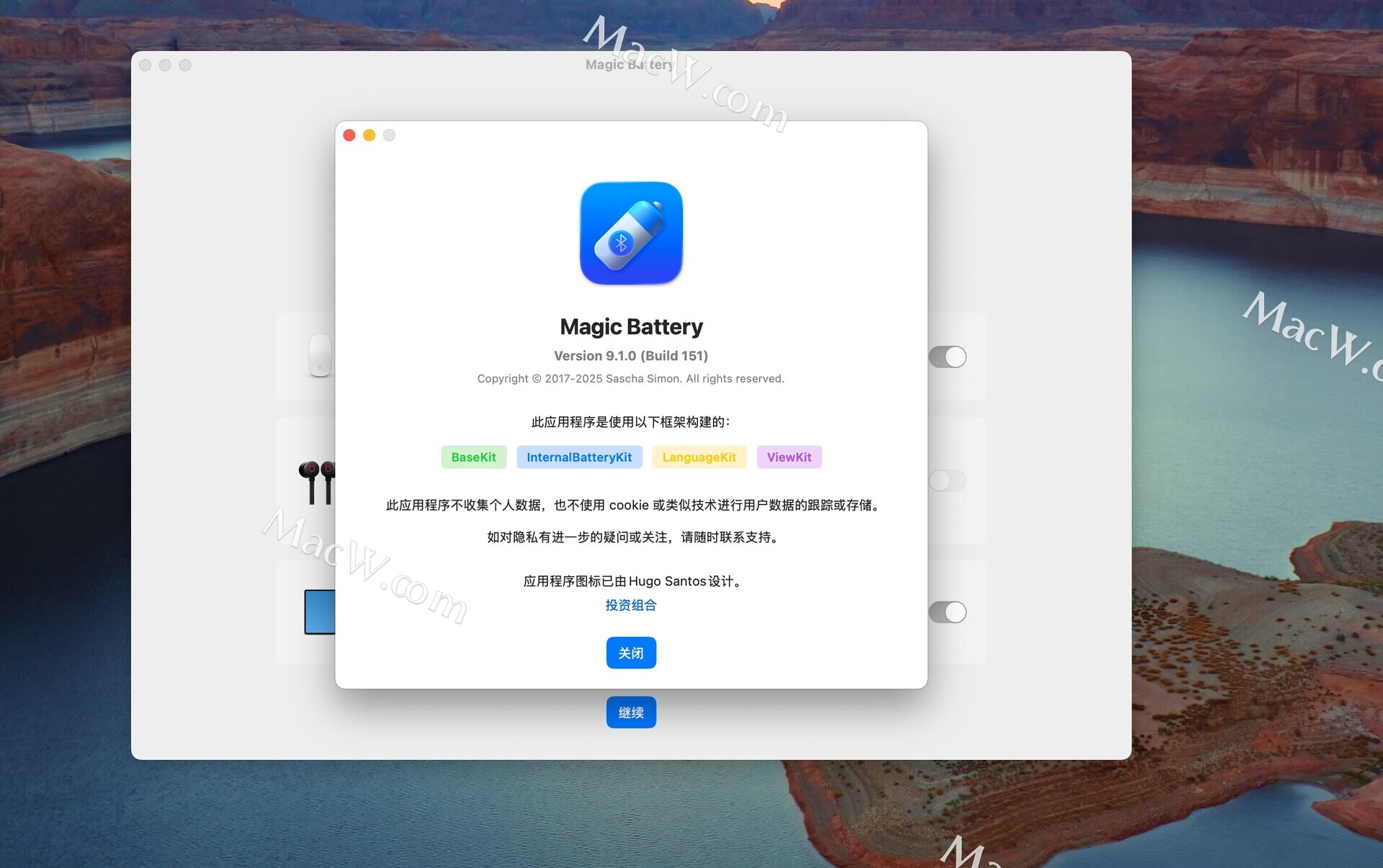 想要随时掌握苹果设备电量吗?App Magic Battery 会在菜单栏中显示支持的输入设备和通过蓝牙连接的耳机的电池电量。此外,还支持内置电池