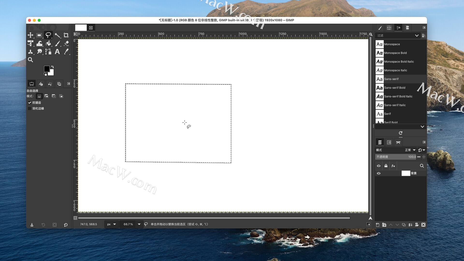 - Free Select工具现在可以创建初步选择