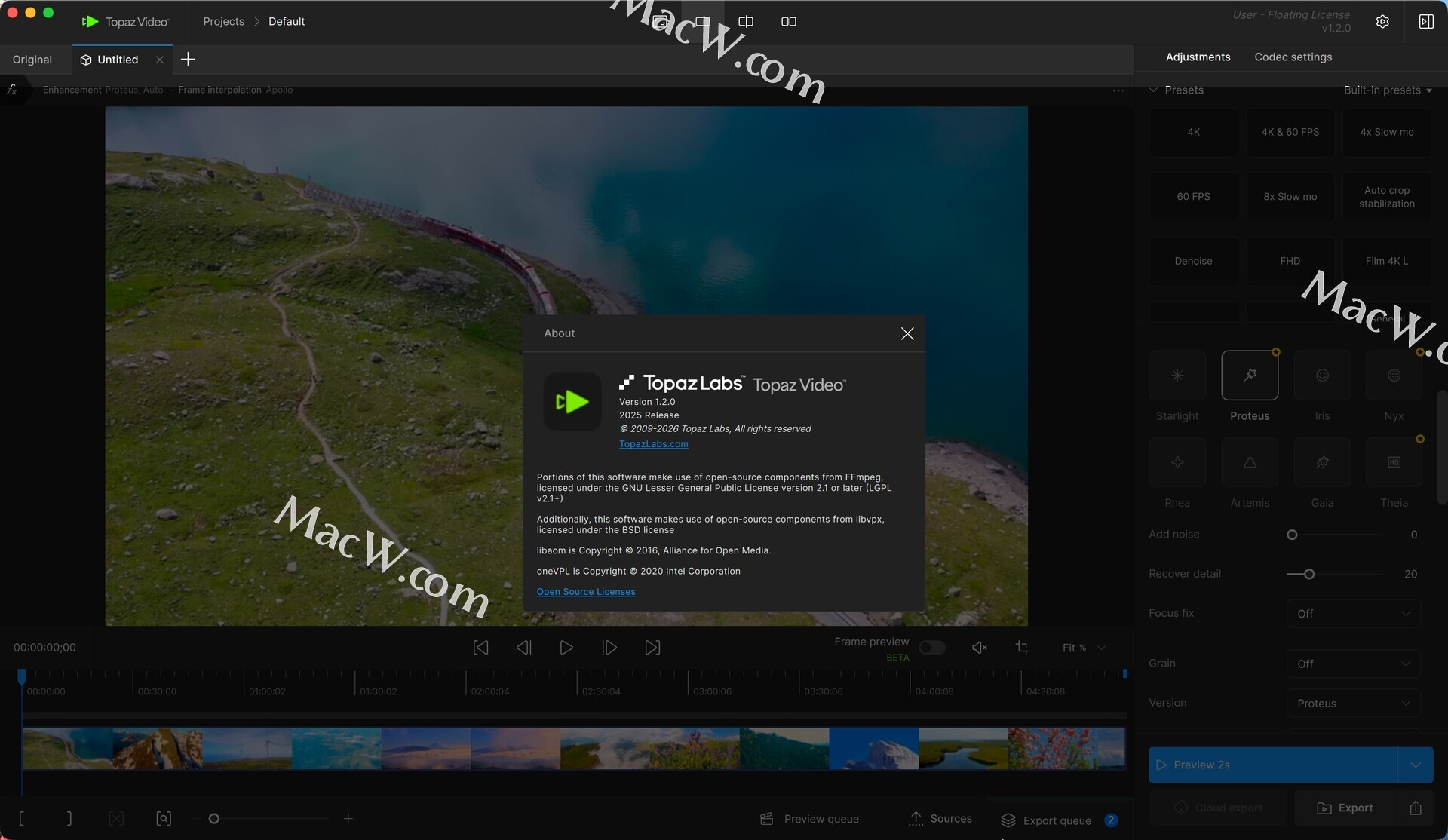 Topaz Video for mac(时域视频质量增强),视频增强AI利用多帧信息,在视频升频、去噪、去隔行和修复方面实现高端效果。由于存在闪烁、块状和波纹状伪影等与运动相关的问题,提升视频质量远比提升照片质量复杂。为解决这一问题,视频增强AI会参考周围帧以提高分辨率并减少运动伪影,从而获得自然的效果。