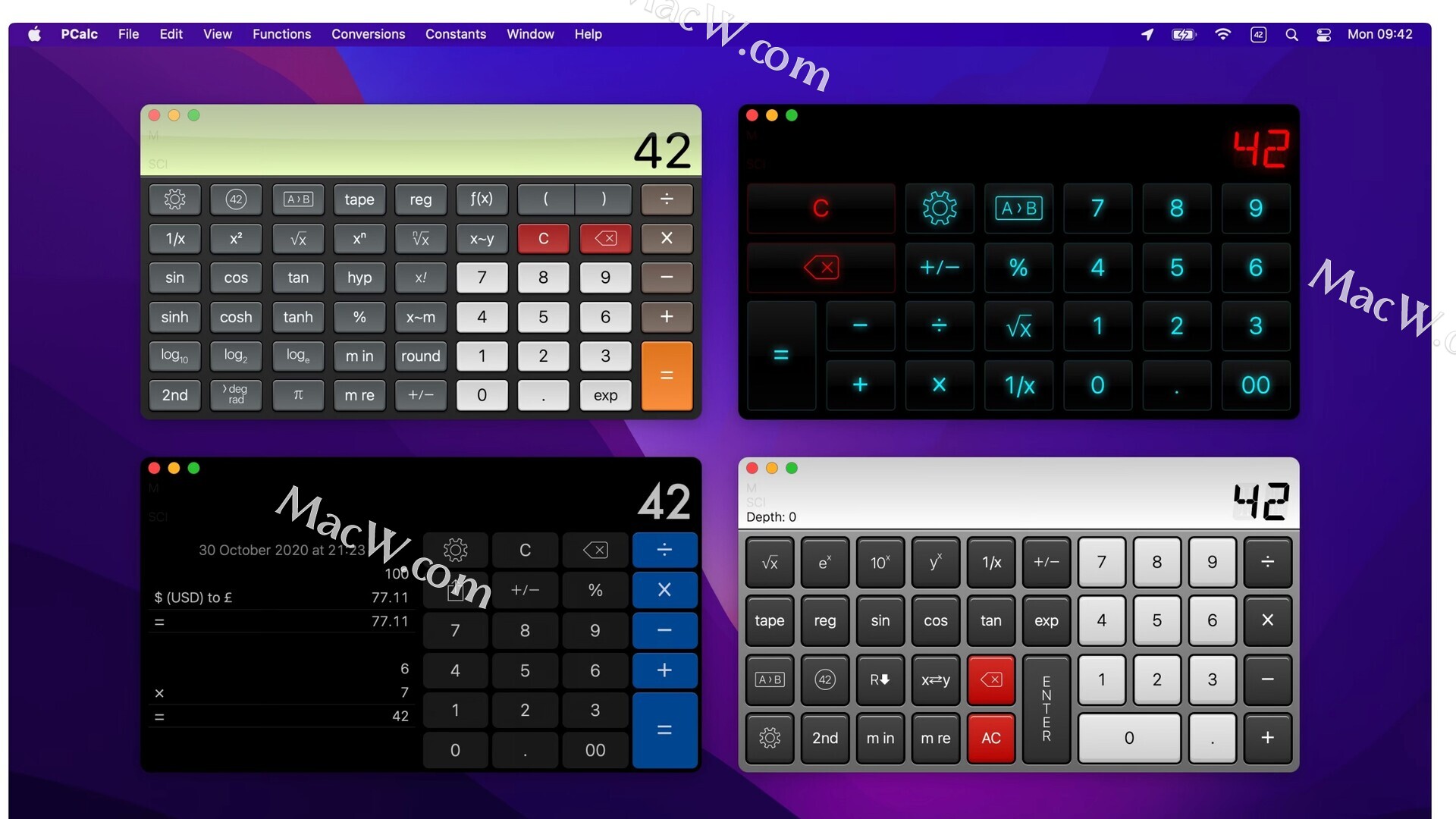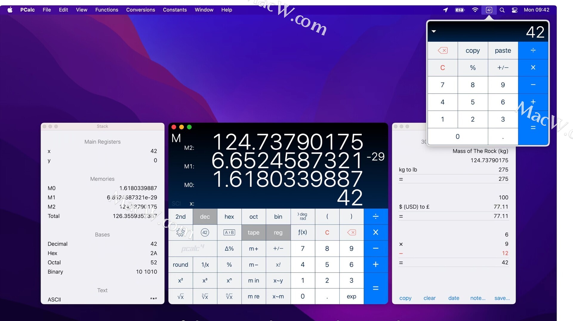 Mac计算器软件有哪些?PCalc计算器是一款有特色的科学计算器.支持十六进制,八进制和二元运算,以及一个RPN模式,在可编程功能的基础上提出了一套广泛的单位转换。