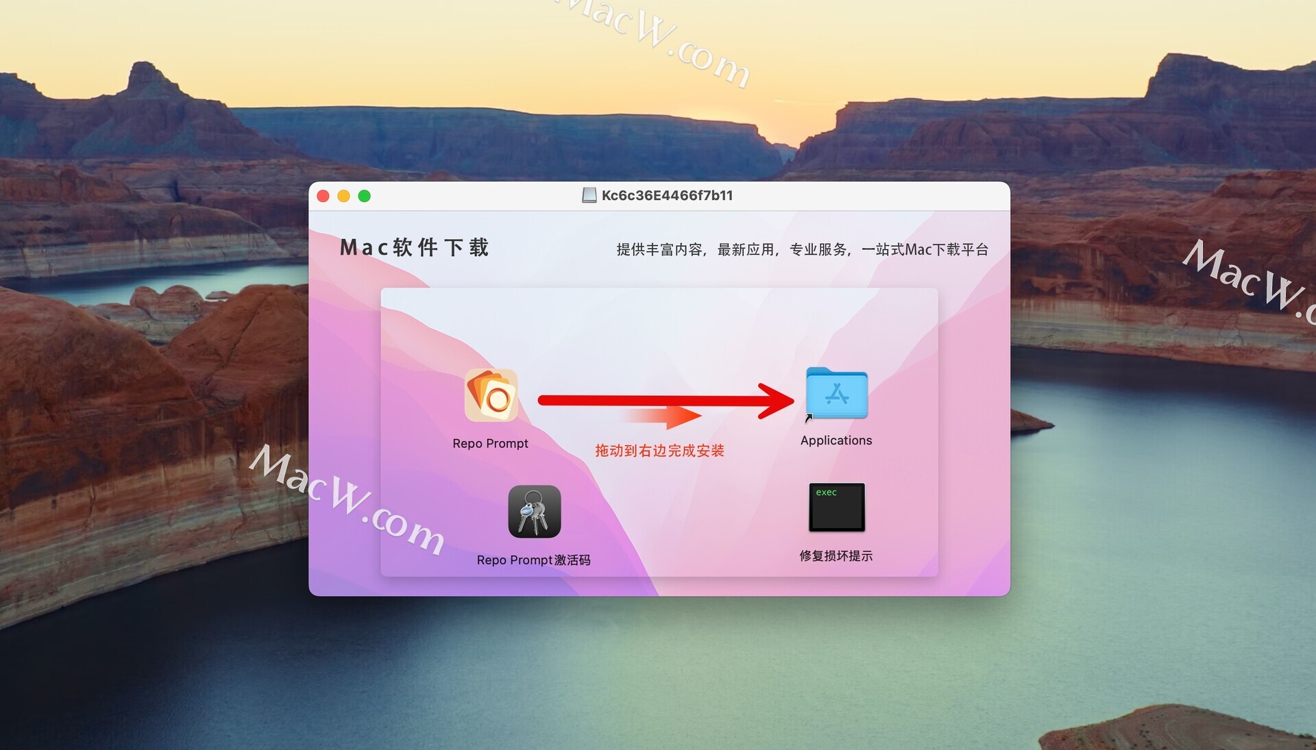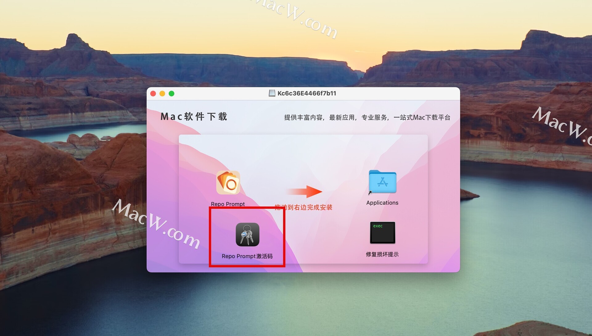将左侧的Repo Prompt 拖动到右侧的应用程序中即可,如图
