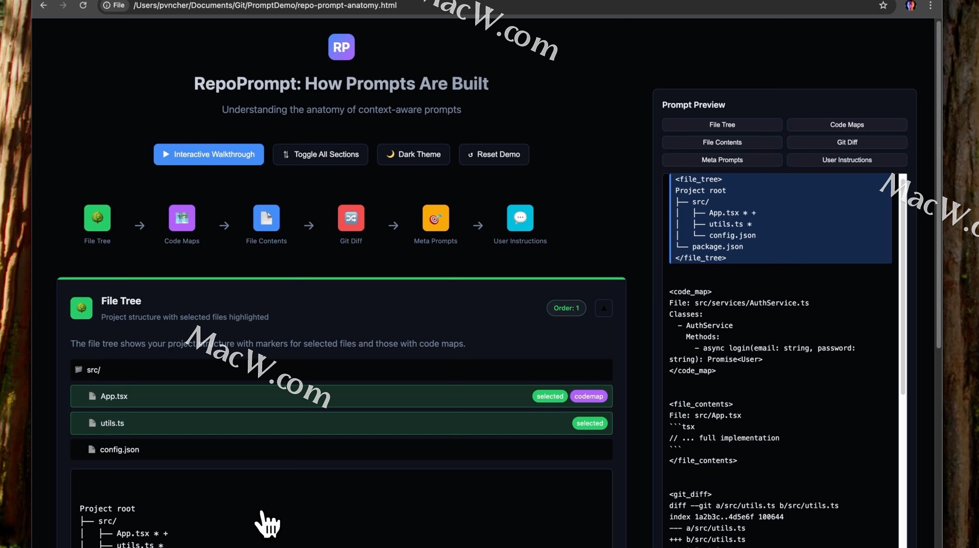 - 了解 Repo Prompt 如何从您的代码库中构建更优质的提示。它会结合您的项目结构、近期更改和编码模式,创建全面的提示,帮助 AI 真正理解您的代码。