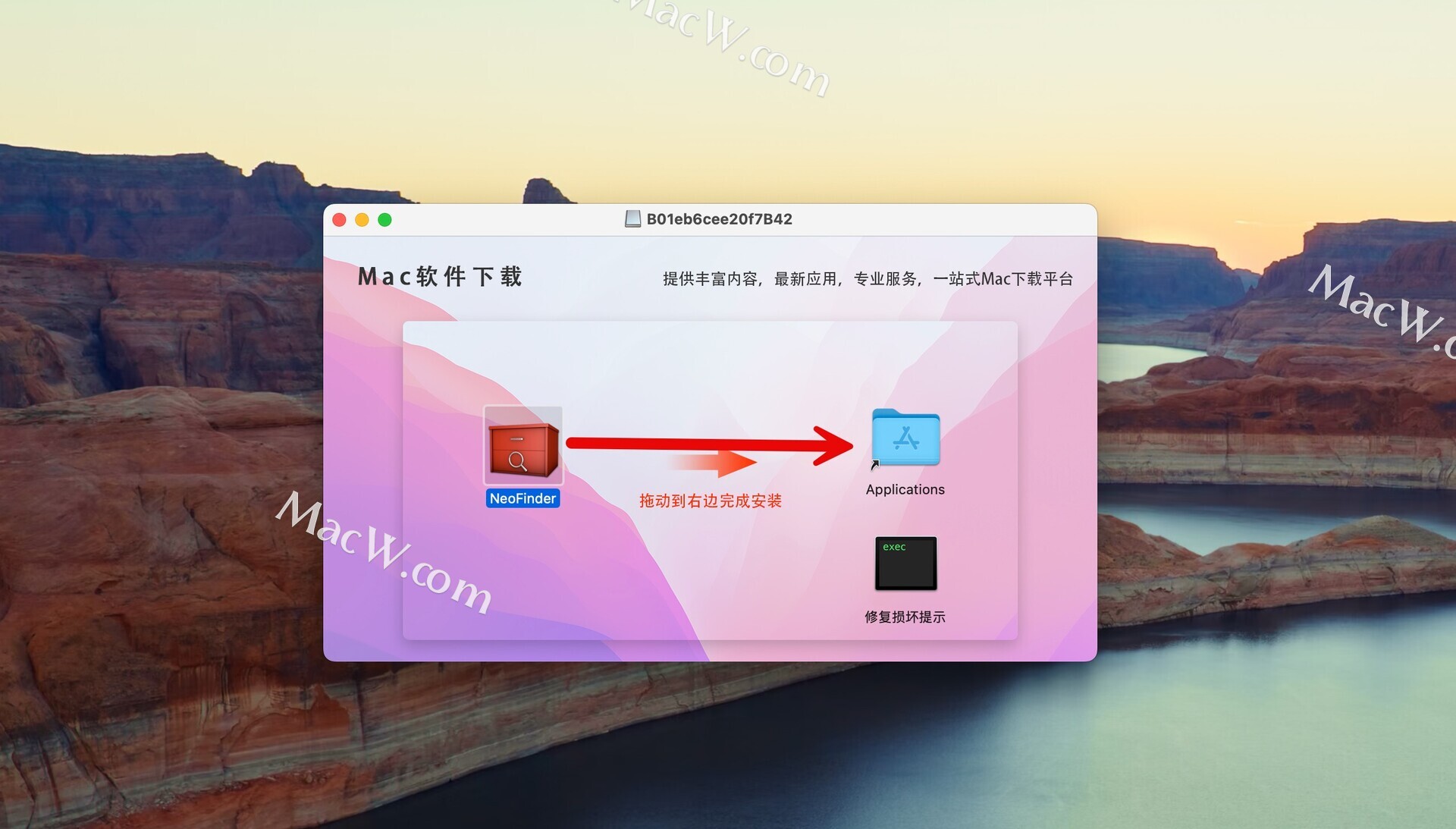将左侧的NeoFinder 拖动到右侧的应用程序中即可,如图