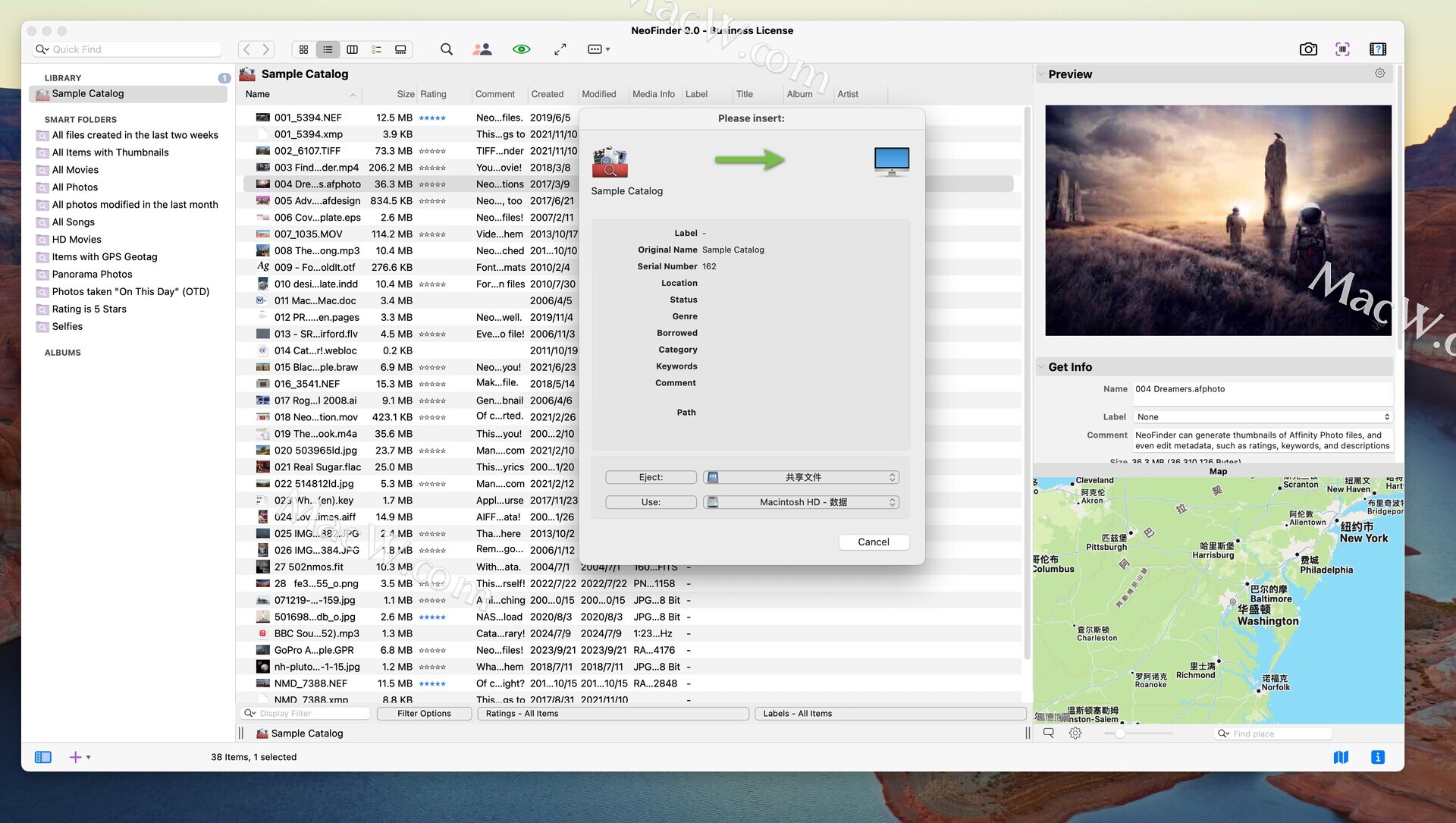 NeoFinder for mac(原名 CDFinder)是一款数字资产管理软件,专为光盘数据(包括音乐、照片、视频和其他文件)的编目而设计,并支持提取缩略图和 XMP 等元数据。它允许您创建庞大的文件信息数据库,从而简化大型数据集中的文件搜索和管理。