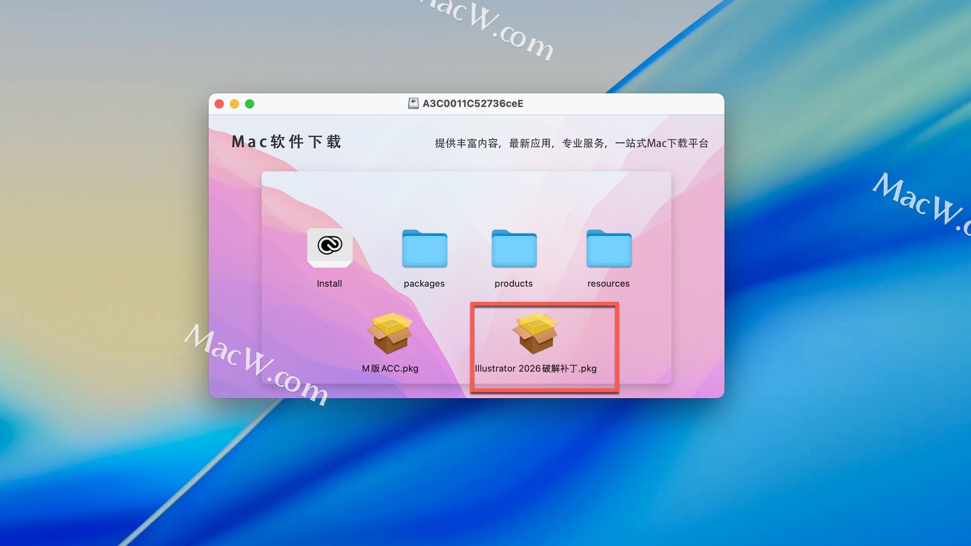 Ai2026破解版下载完成后打开,双击ACC.pkg进行安装,如电脑上安装着ACC的可以略过此步骤