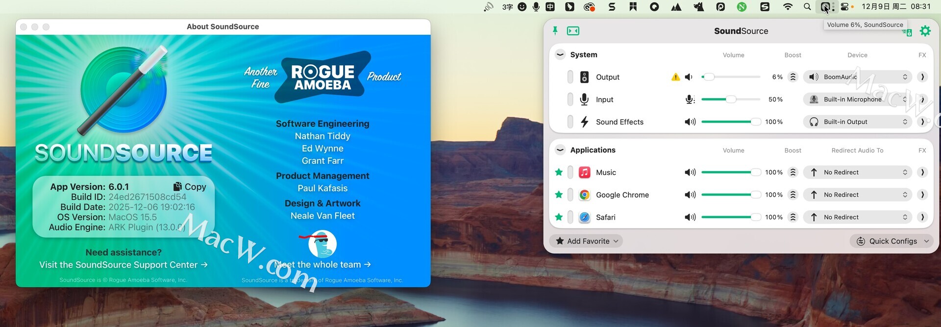 SoundSource 6 for Mac一款专业的mac音频控制器,旨在提供全局和应用级别的音频管理与增强功能。通过 SoundSource,用户可以轻松调整系统音量、独立应用音量、输入输出设备选择以及音效处理,提升 Mac 的音频体验。