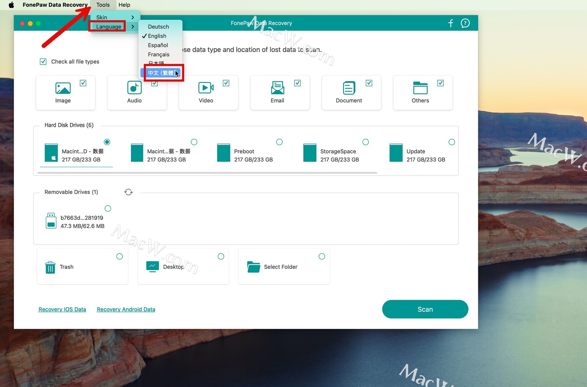- 除了 Mac 设备内部的 Mac HDD 和 SSD 之外,还为许多其他平台或外部设备提供广泛的免费数据恢复支持,包括 Time Machine、USB、SD 卡、相机等等。