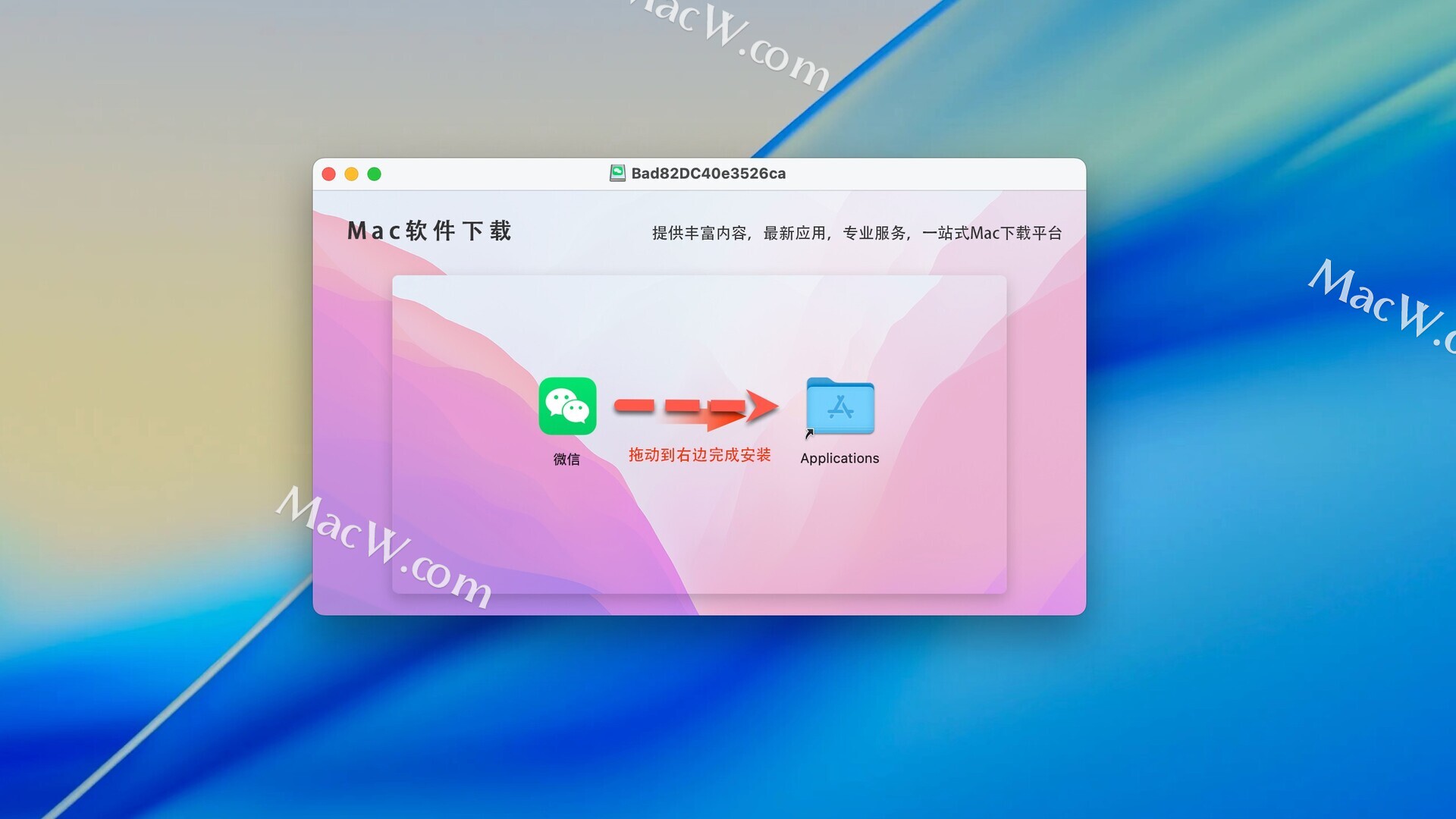 微信多开下载完成后打开,拖动左侧的软件到右侧应用程序中即可
