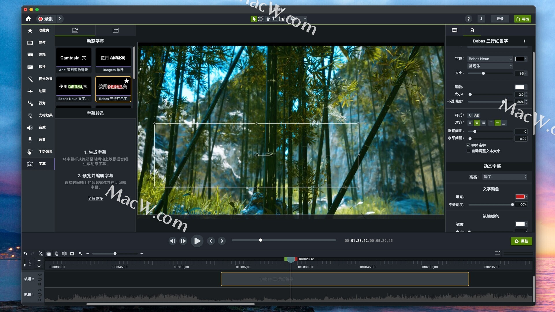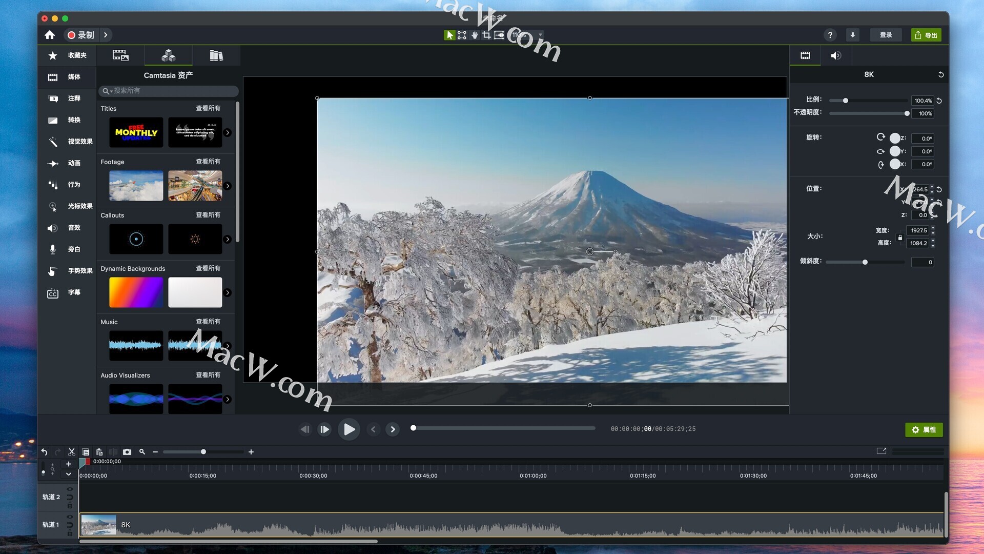 综上所述,Camtasia 2026 for Mac是一款功能强大、易于使用的屏幕录制与视频编辑软件。它不仅能够帮助用户高效地录制和编辑视频内容,还提供了丰富的动画效果和智能识别功能,以及便捷的视频分享选项。无论是教育工作者、内容创作者还是企业宣传人员,都可以通过这款软件轻松制作出专业且吸引人的视频作品。测试环境:MacOS 13.7.6